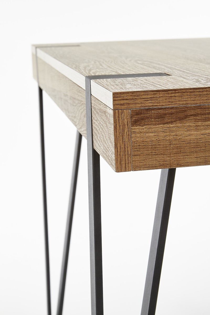 Elegant desk with a honey walnut finish and a black steel frame. .. more