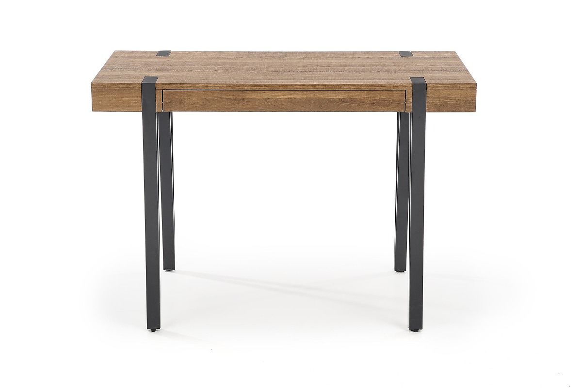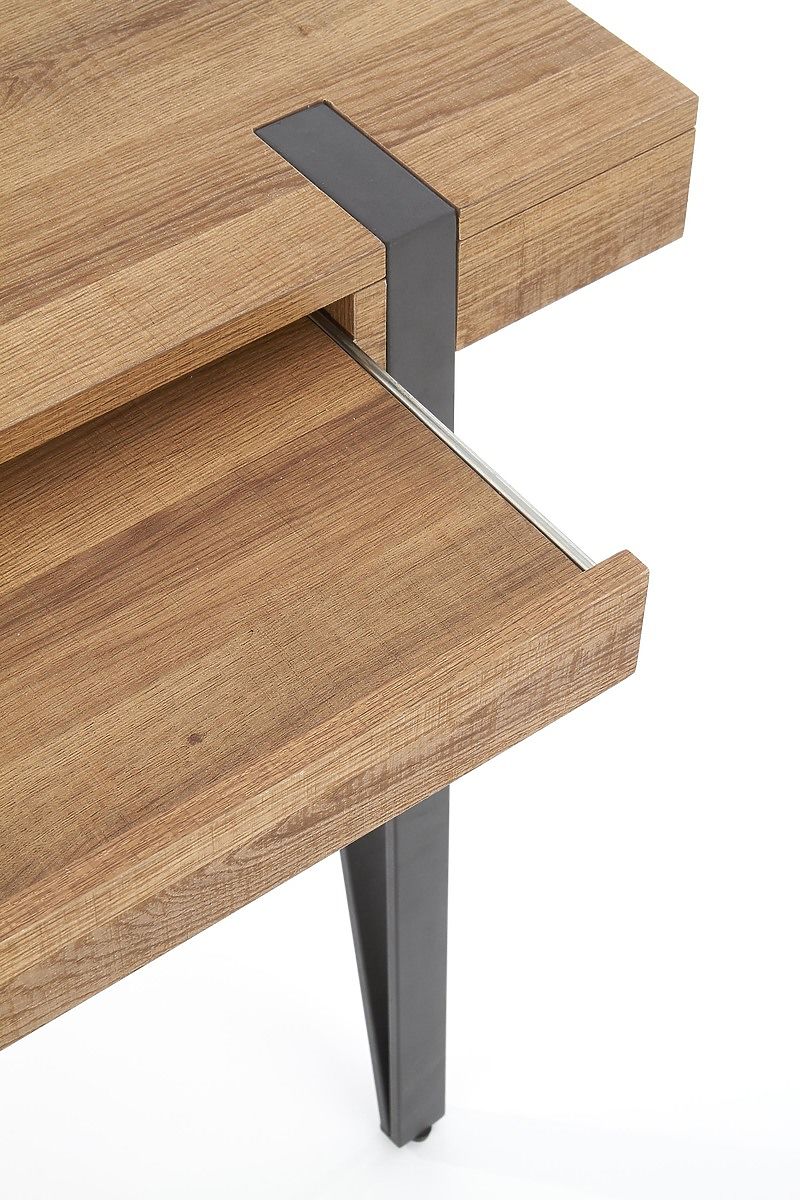 The worktop is made of laminated MDF board in honey walnut color. The frame is made of powder-coated steel in black.