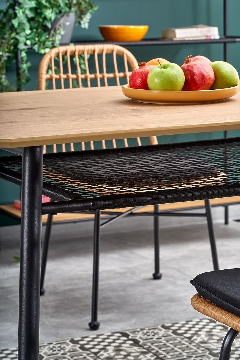 The JACKSON dining table is perfect for the kitchen or dining room. Under the tabletop, there is a practical storage area made of synthetic rattan.