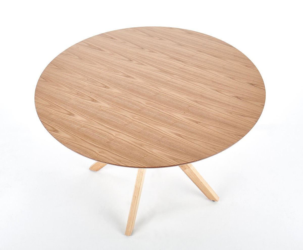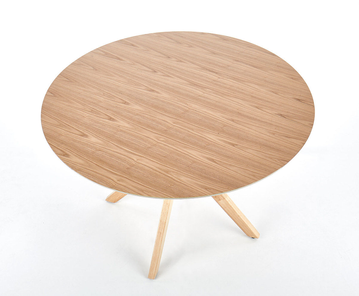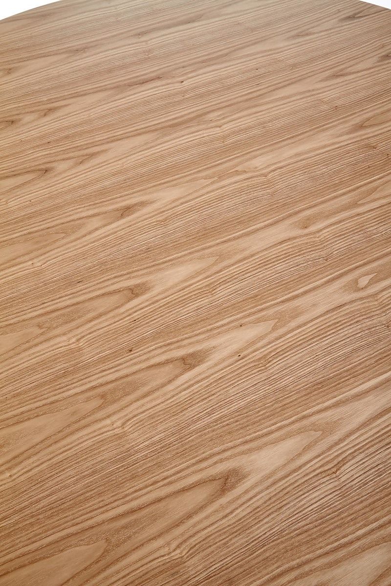 The tabletop is made of MDF board with natural veneer. The table legs are made of solid wood.