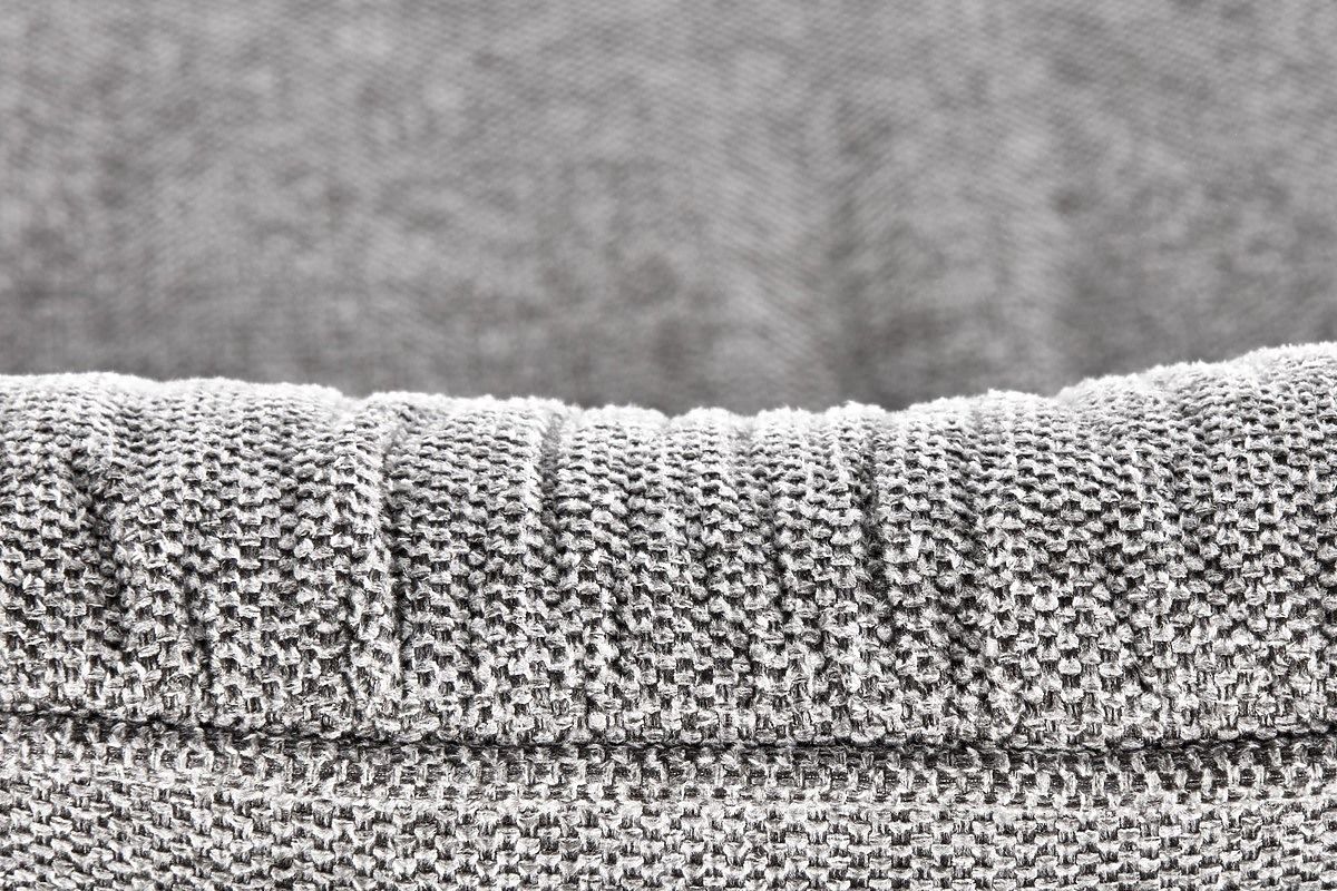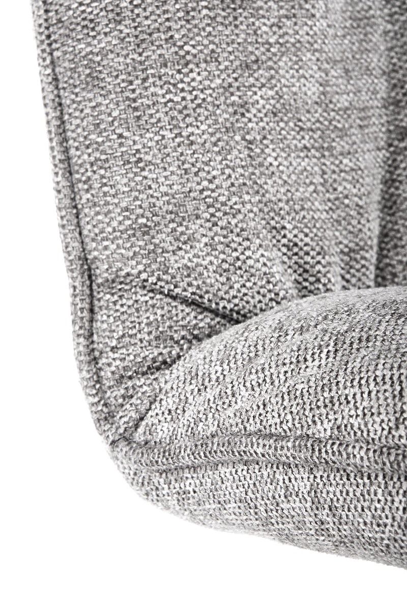 The seat and backrest are upholstered in a comfortable gray fabric. The frame is made of black powder-coated steel.