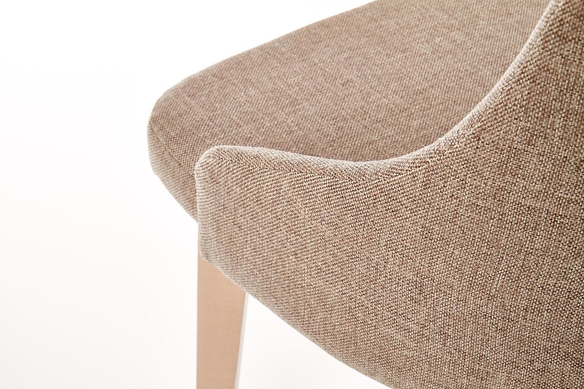 The chair's frame is made from solid beech wood in a sonoma oak finish. The seat and backrest are upholstered in a comfortable brown fabric.