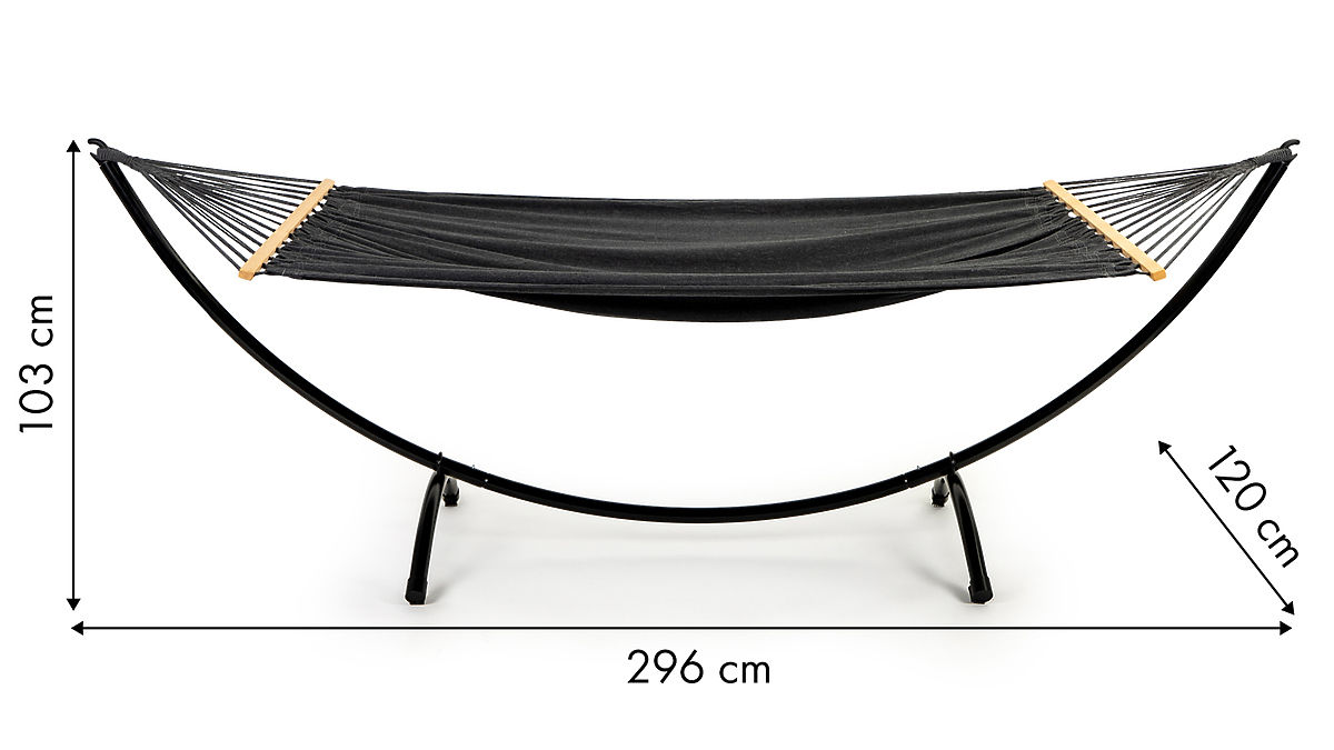 HAMMOCK WITH STAND Ideal for the terrace and garden Stable, metal construction, powder-coated The hammock is weather-resistant Maximum load - 150 kg Hammock .. more