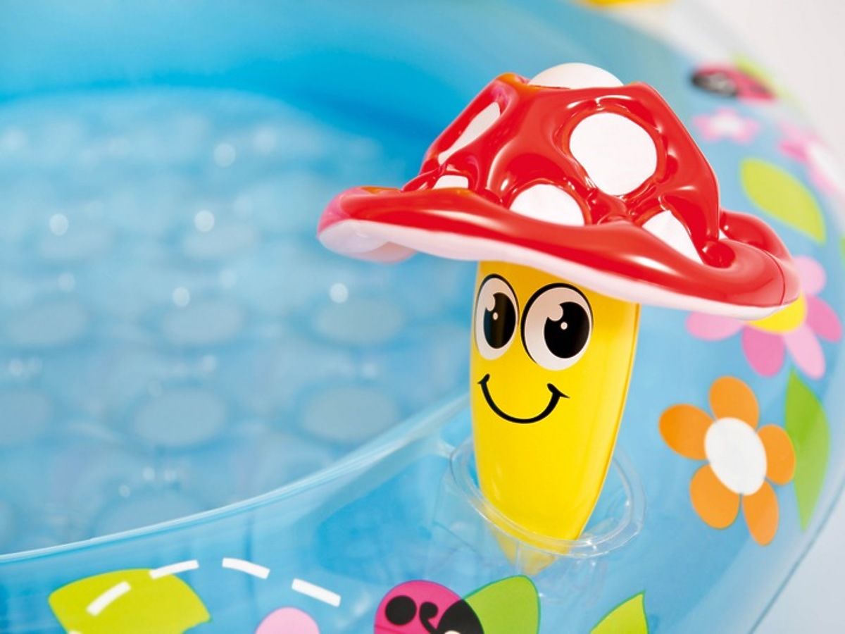 THOUGHTFUL, SAFE DESIGNThe pool is made of durable PVC material, whose flexibility ensures resistance to damage and safe play. The mushroom-shaped roof protects against sunlight and provides shade for the child. The soft bottom of the pool ensures comfort during play and protects the child in case of a fall.