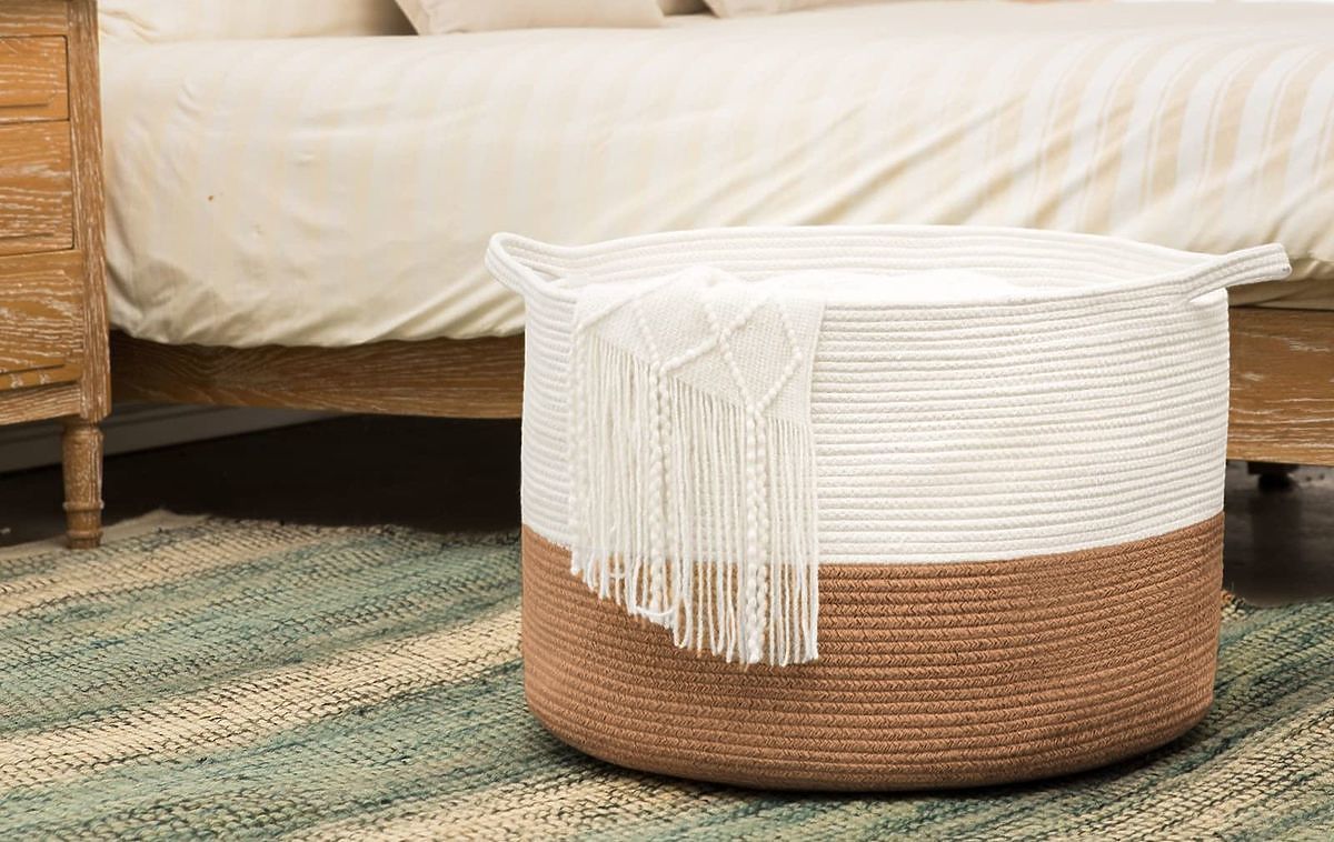 The timeless natural BOHO basket is the perfect accessory for any interior. This stylish basket, handwoven from natural materials, combines natural beige and white tones, bringing a sense of calm and harmony to your home. It fits perfectly in the living room, bedroom, and bathroom, providing ample storage space while also making your home cozier.