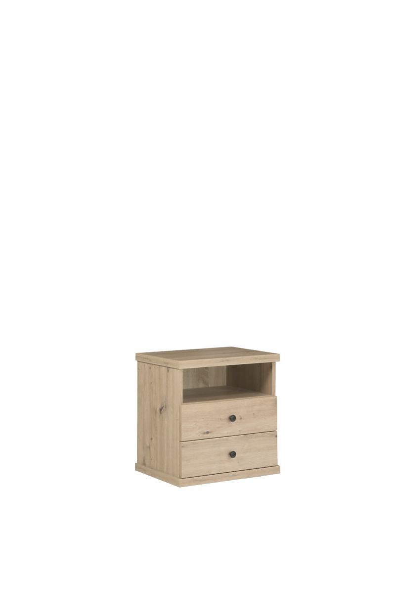 Nightstands with slatted doors and optional metal legs. .. more