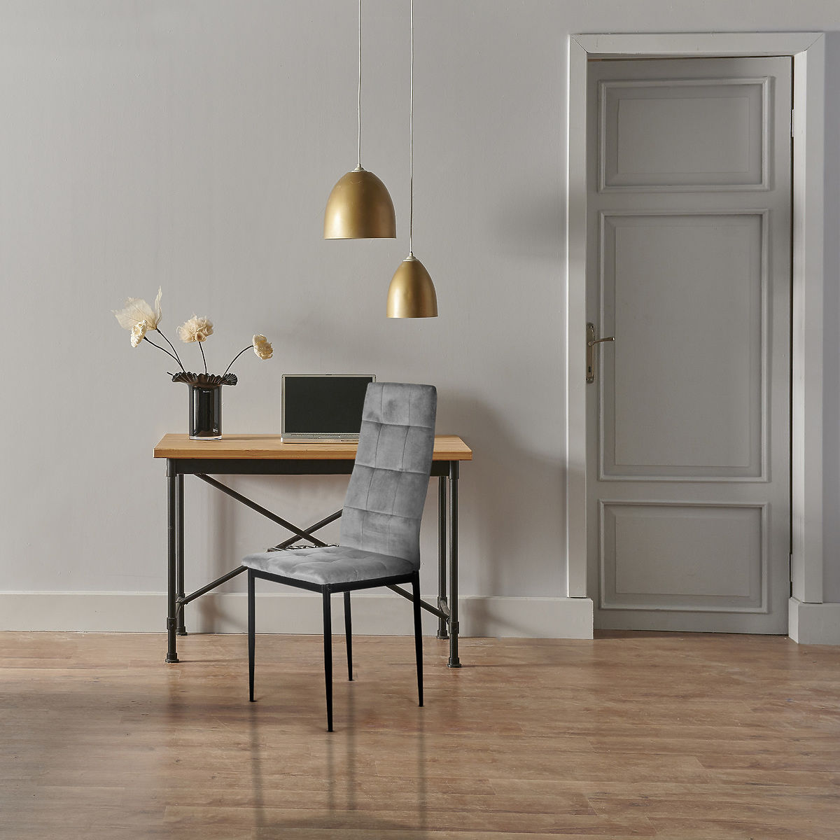 The chairs will perfectly match the family table in your dining room and kitchen. The grey stitched furniture made of pleasant-to-touch fabric fits into any interior and adds the right charm.
