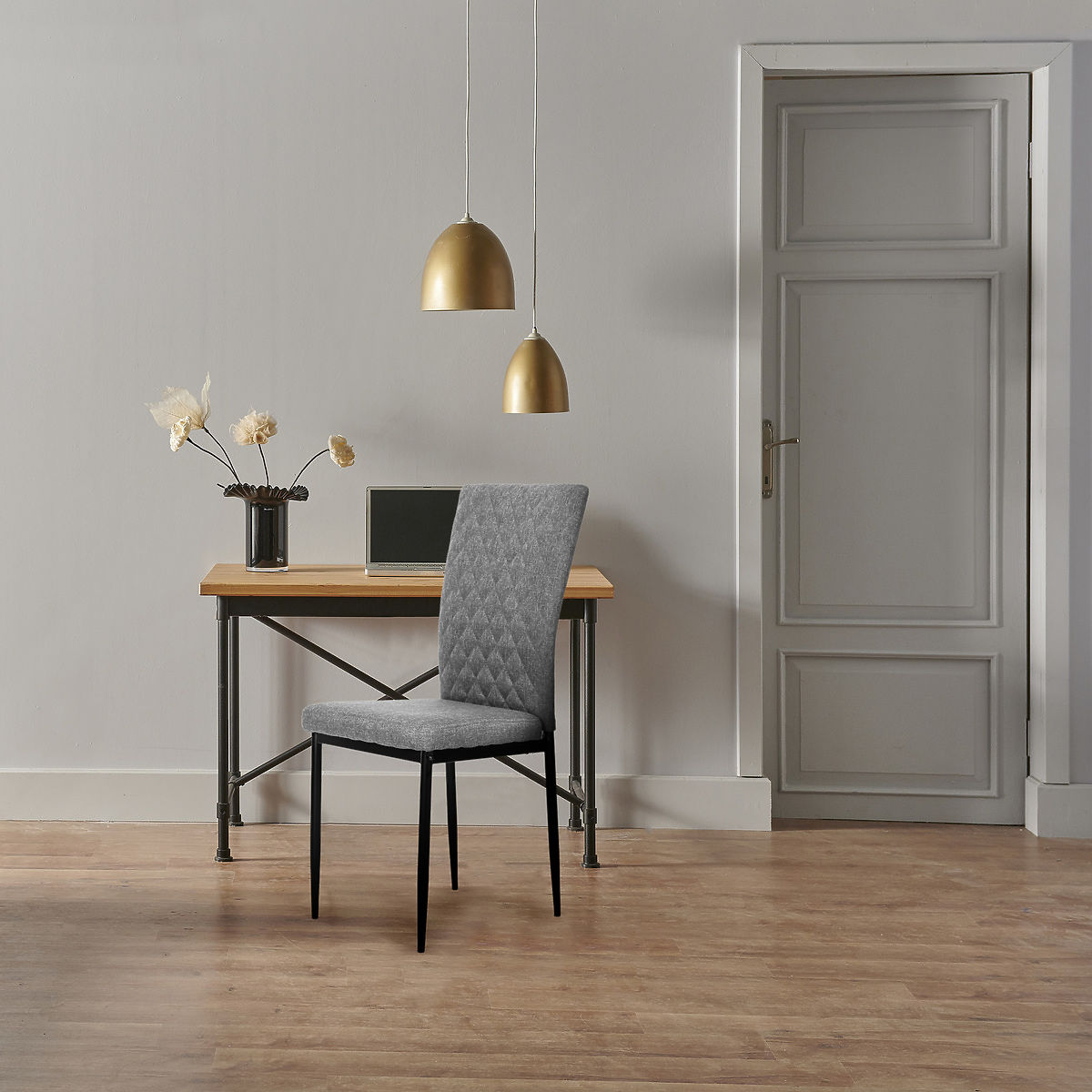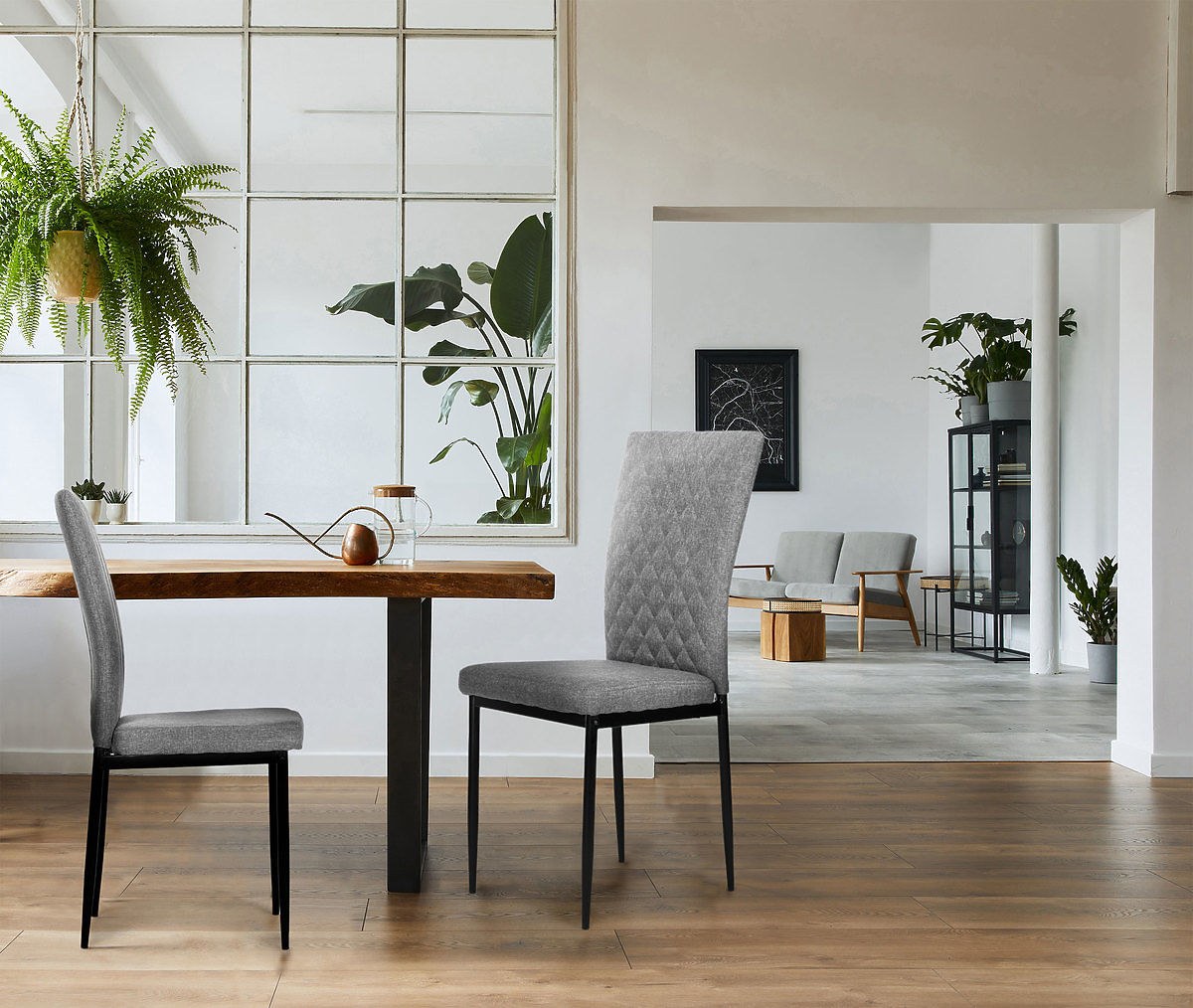 The chairs feature a modern style that fits well into various interior arrangements, from minimalist to more classic. Simple lines and an elegant look add charm to the interior. The gray quilted backrests not only add elegance to the chairs but also ensure additional comfort. These chairs will perfectly match your family table in your dining room and kitchen. Their elegant gray color fits well with various interior styles, from modern to more traditional.