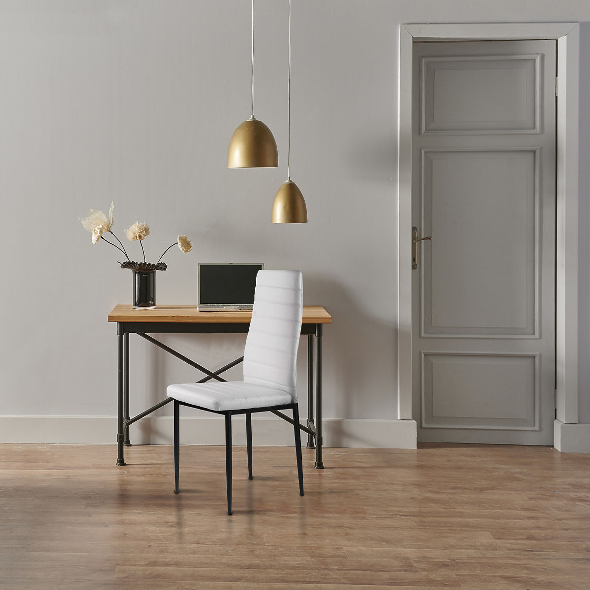 The chairs will perfectly match the family table in your dining room and kitchen. The white upholstery made of soft eco-leather and the simple black legs create an interesting combination that will make the chairs look great and fit into any type of interior, giving it a unique character.