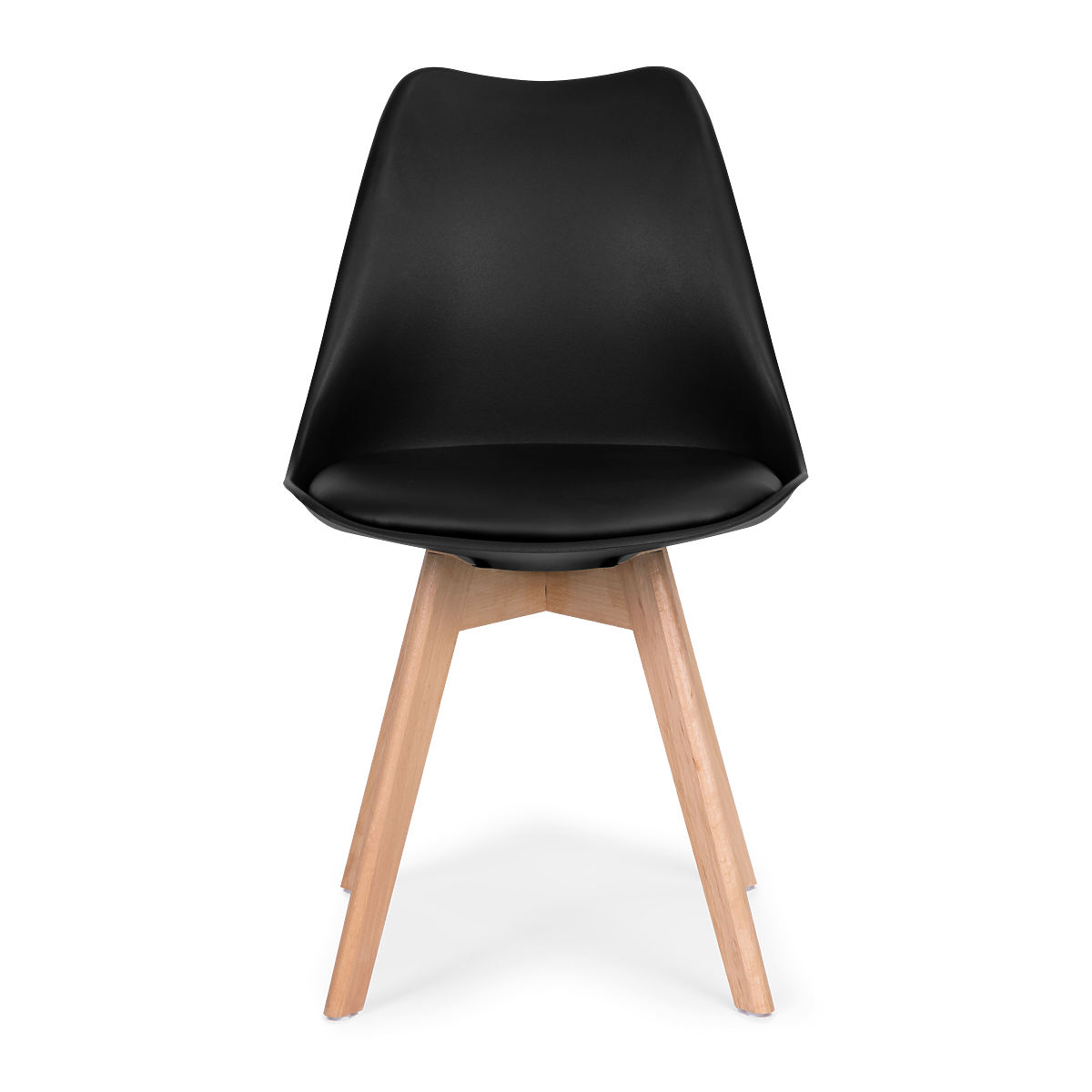 The combination of beech legs with an elegant eco-leather cushion gives the chair a modern yet cozy look.