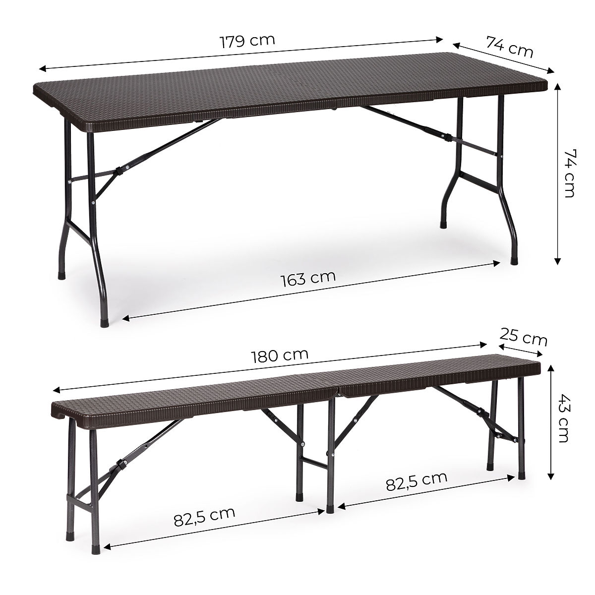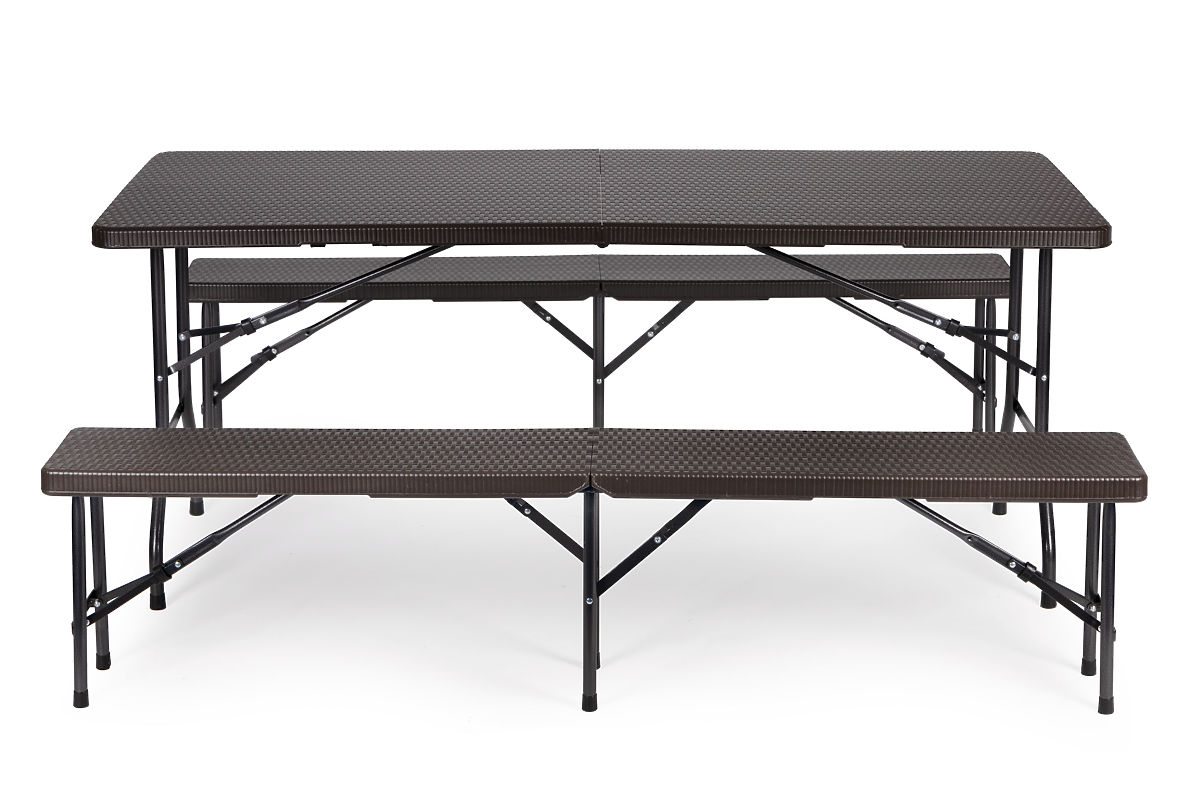 Lukafurniture.eu » Garden furniture / Catering Set Banquet Table 180 cm 2 Benches Rattan Brown ModernHome