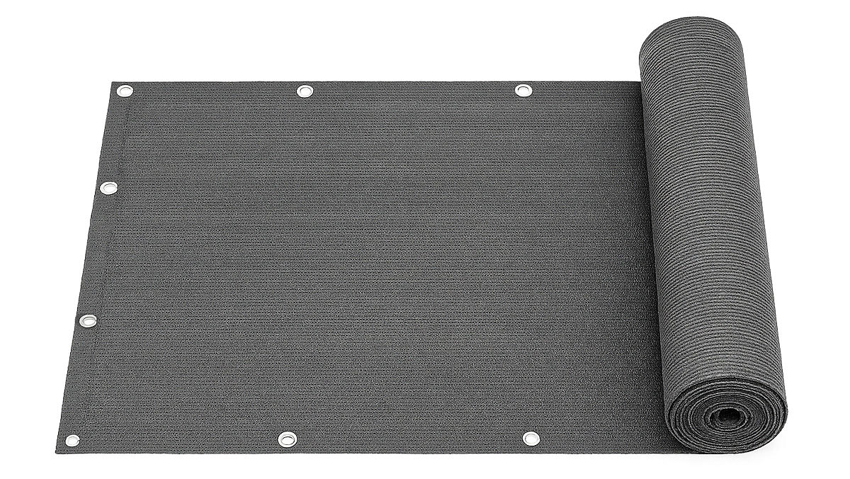 Weather-resistant balcony screen with HDPE mesh and aluminum eyelets. .. more