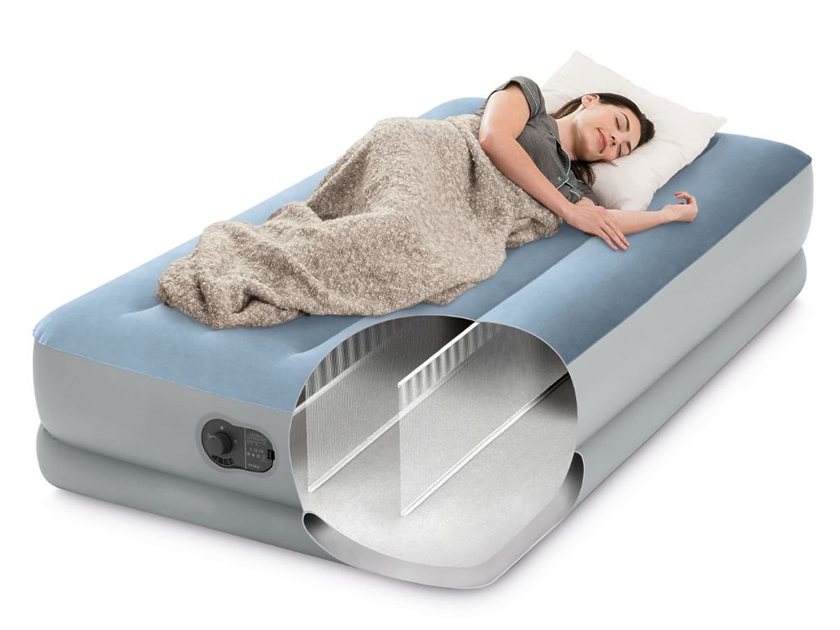 MODERN FIBER-TECH TECHNOLOGYThe Fiber-Tech technology is an innovative solution developed by INTEX, which significantly enhances the quality and durability of the mattress. Instead of traditional air chambers, the internal structure is based on hundreds of ultra-strong polyester fibers, forming a uniform, stable structure. Most importantly – these fibers do not stretch over time, allowing the mattress to maintain its shape and properties even after many cycles of inflation and use. Thanks to Fiber-Tech technology, the user will experience comfort comparable to a traditional bed, making the mattress ideal for both everyday sleep and occasional rest.