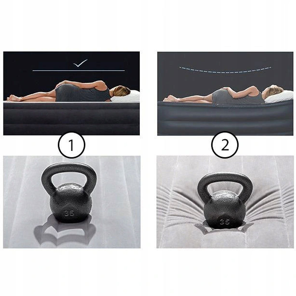 EASY INFLATION WITHOUT EFFORTBuilt-in electric pump ensures quick inflation without the need for force or additional accessories. It is powered by popular 5V/2A sources, such as power banks, smartphone chargers, USB ports, or car chargers. This allows you to inflate the mattress practically anywhere – in a tent, while camping, or at home.