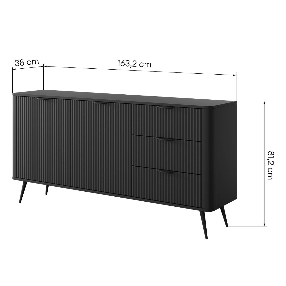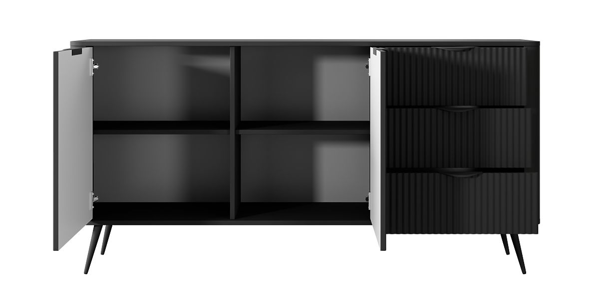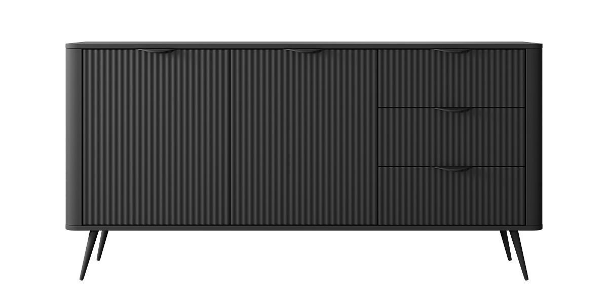 Lukafurniture.eu » Do home / living room / Commodes / Two-Door Sideboard with Drawers Lante Black, Ribbed, Rounded