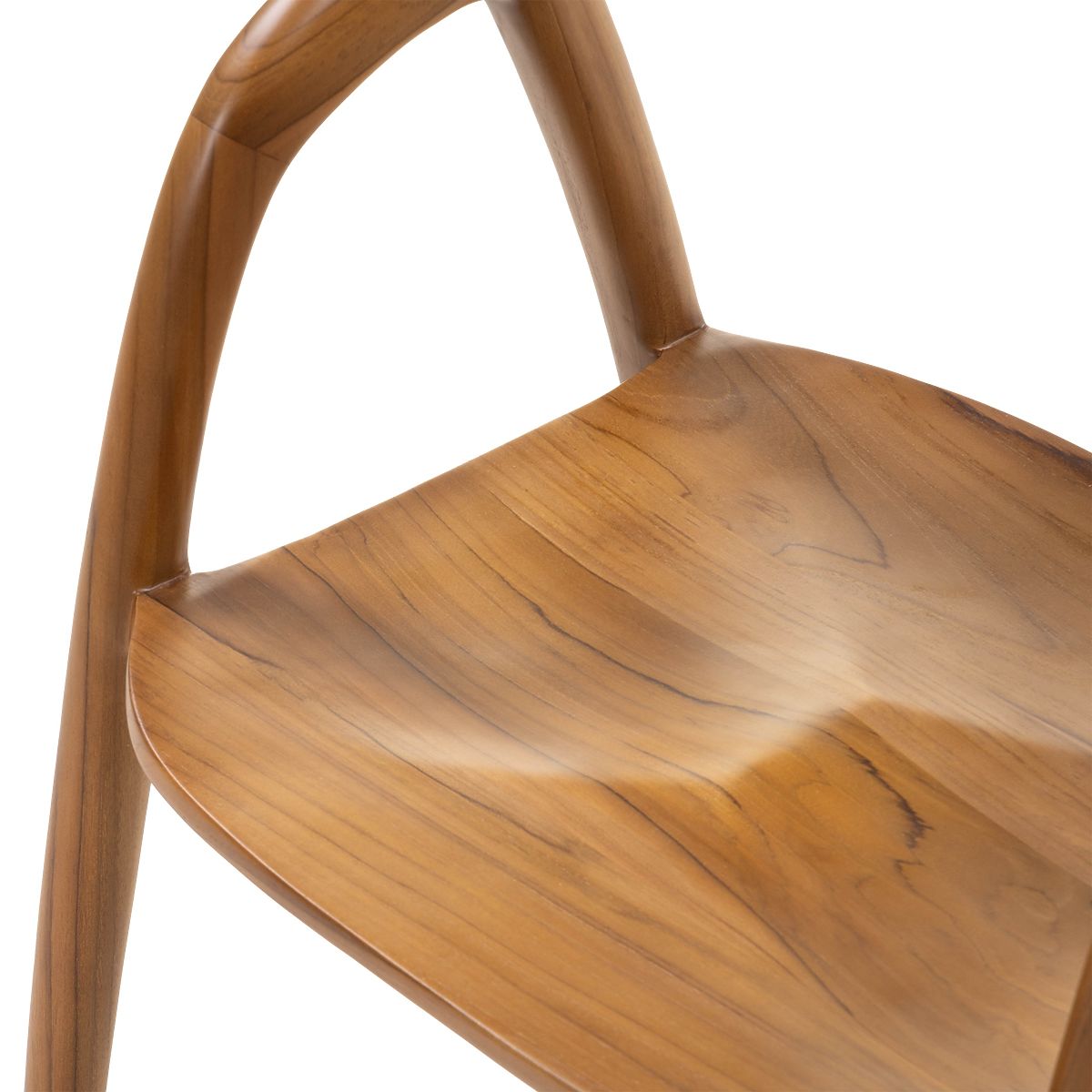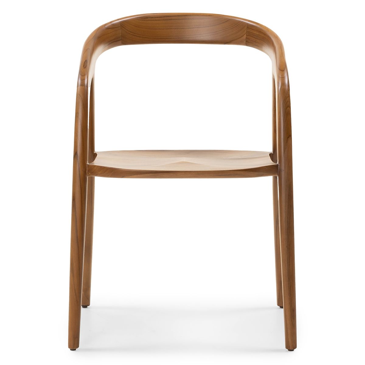 Rounded teak wood chair with natural tones and sturdy construction. .. more