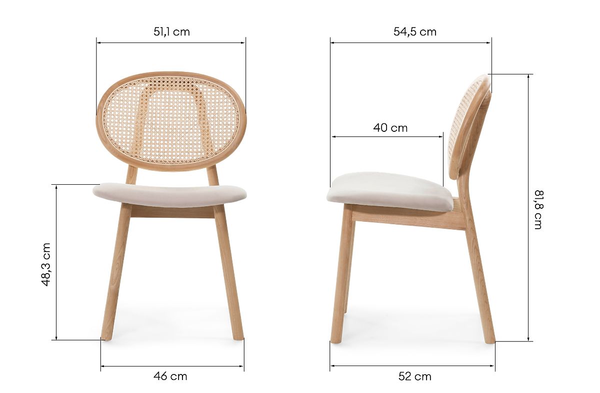 Lukafurniture.eu » Dining room a kitchen / Dining chair / Wooden Chair Monet with Viennese Weave, Rattan, Velour, Natural/Light Brown