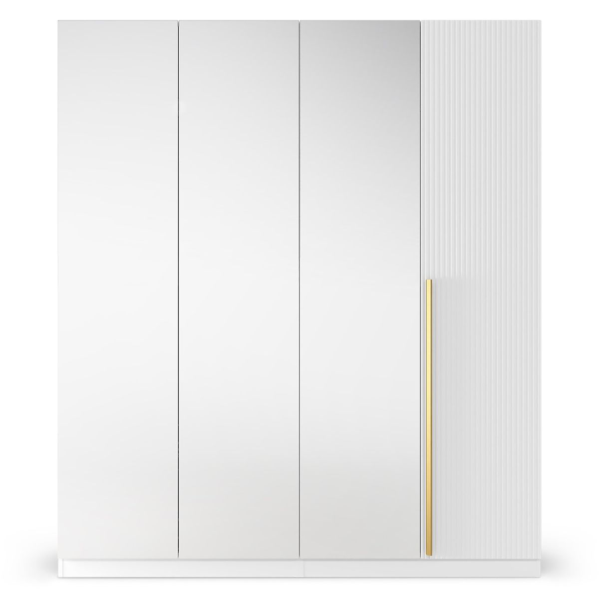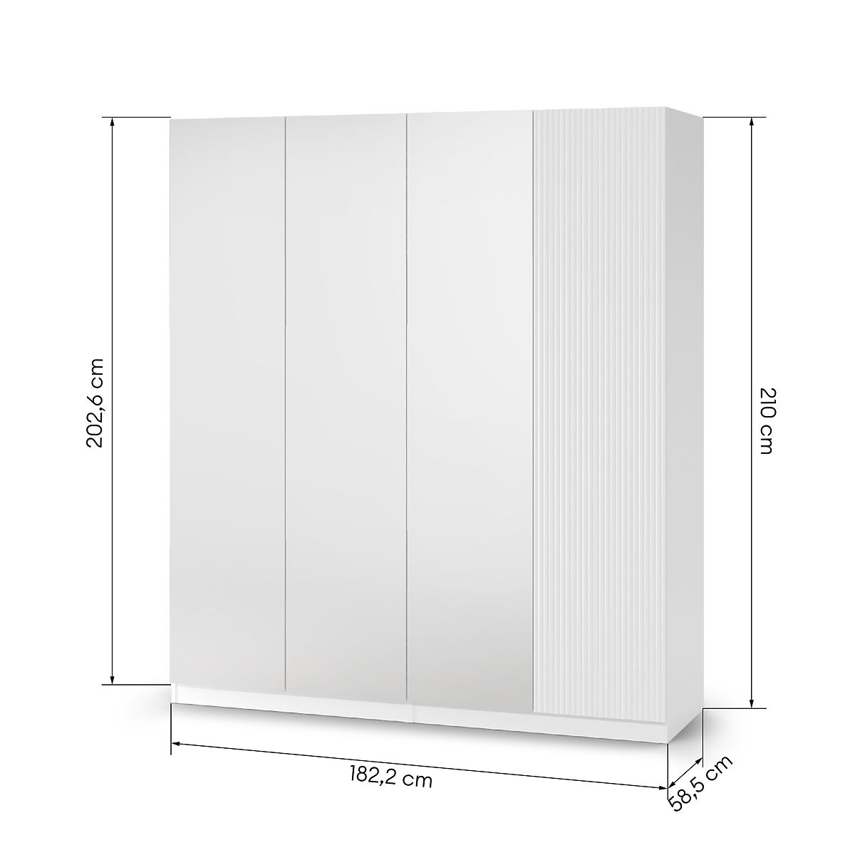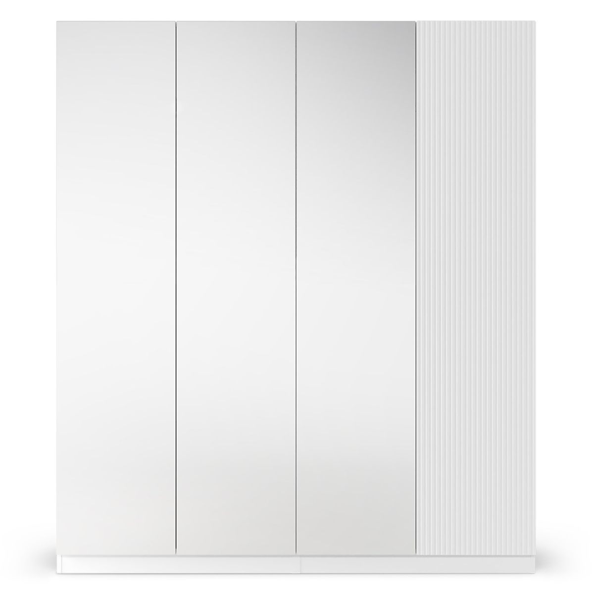 Customizable four-door wardrobe with mirror and decorative grooves. .. more