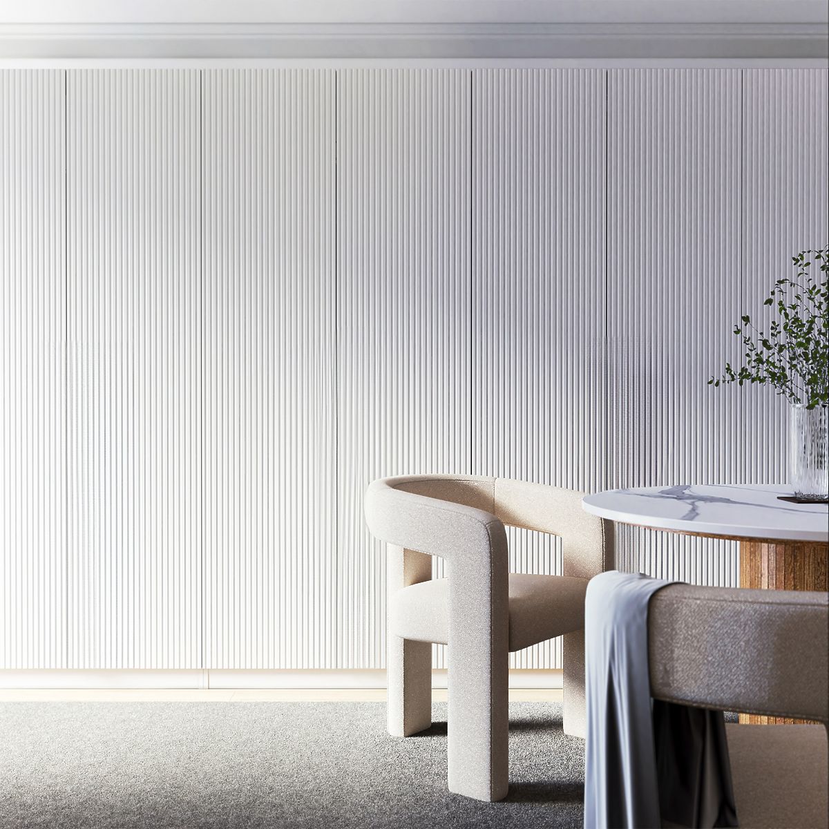 Neroli wardrobe offers customizable storage with elegant grooved design. .. more