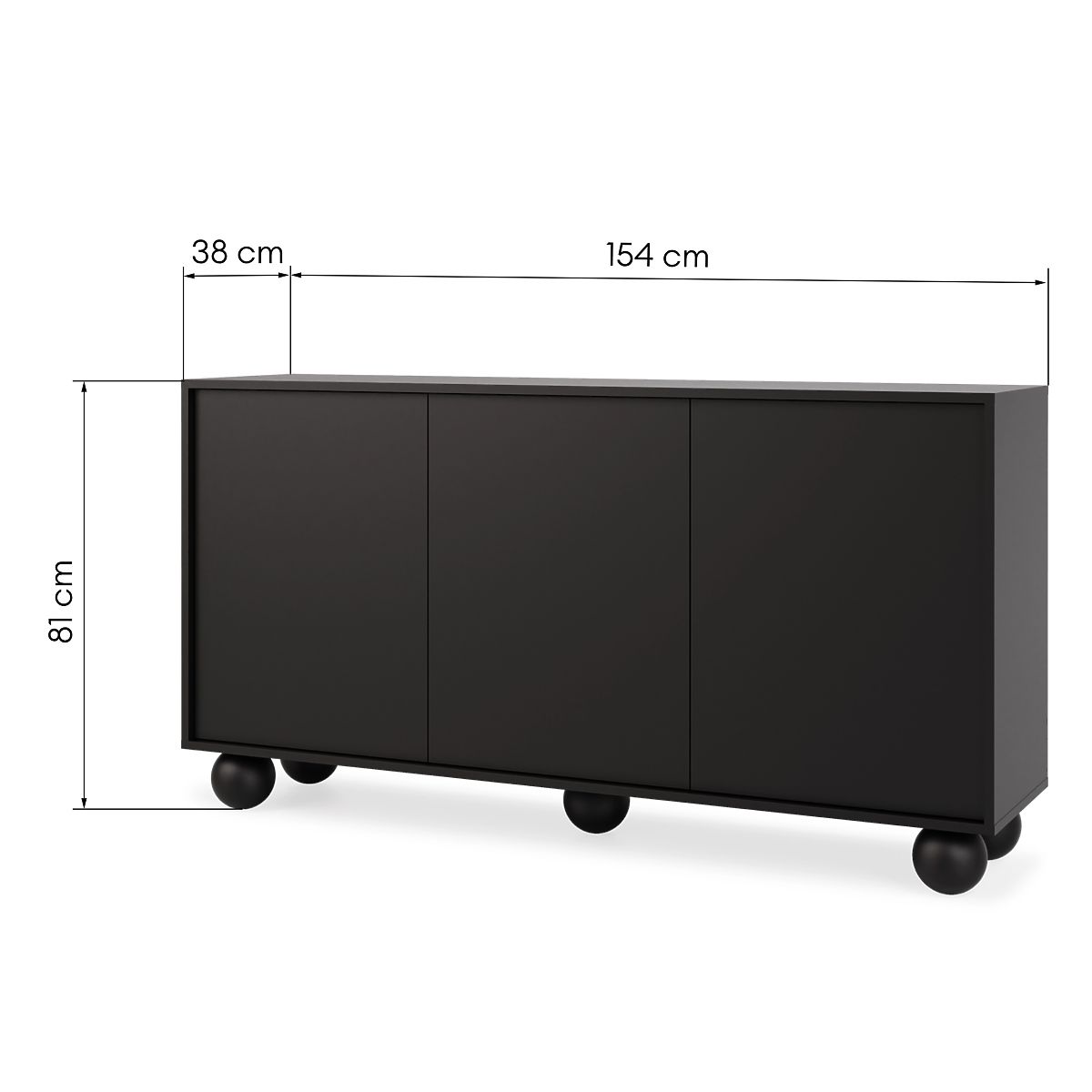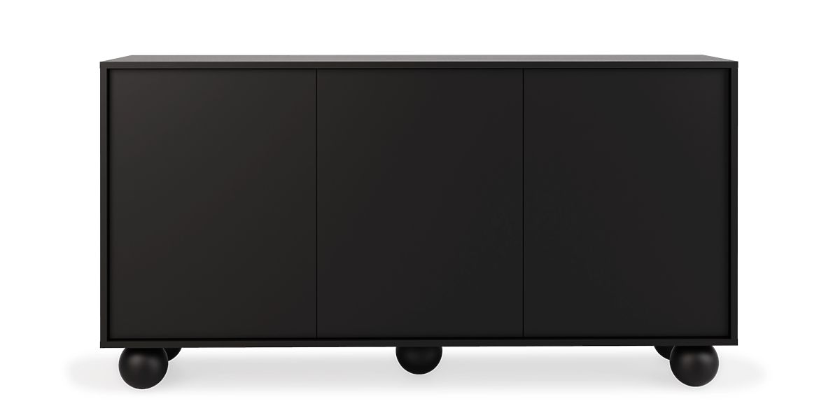 Elegant black sideboard with unique ball-shaped legs. .. more