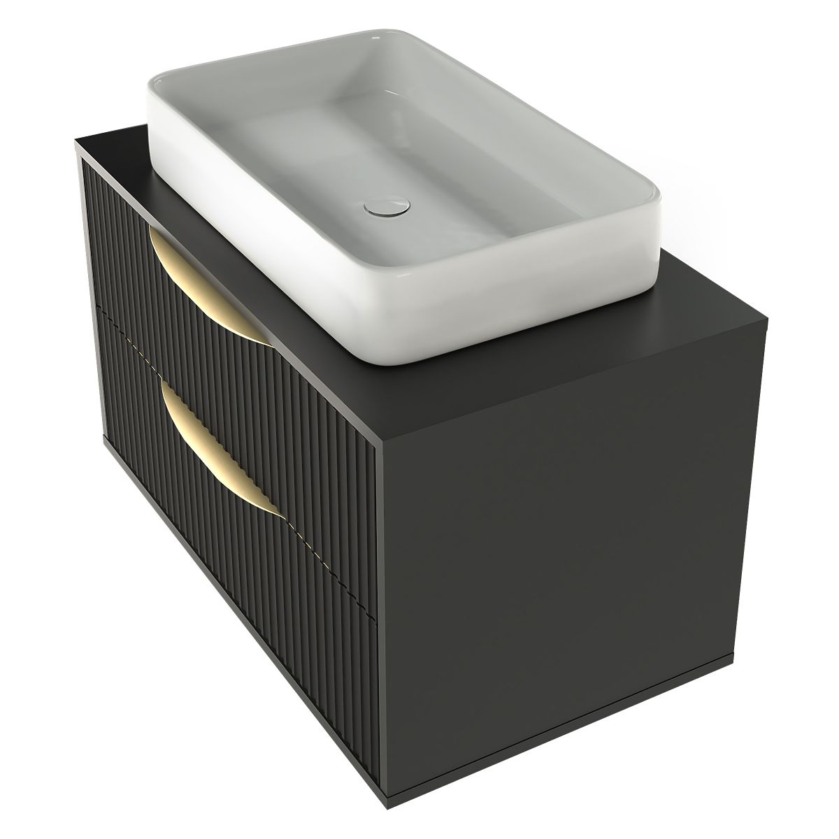 Lukafurniture.eu » Bathroom & Toilet / Bathrooms lockers / Avila 2.0 Under-Sink Cabinet, 80 cm, Grooved, Gold Handles, Black