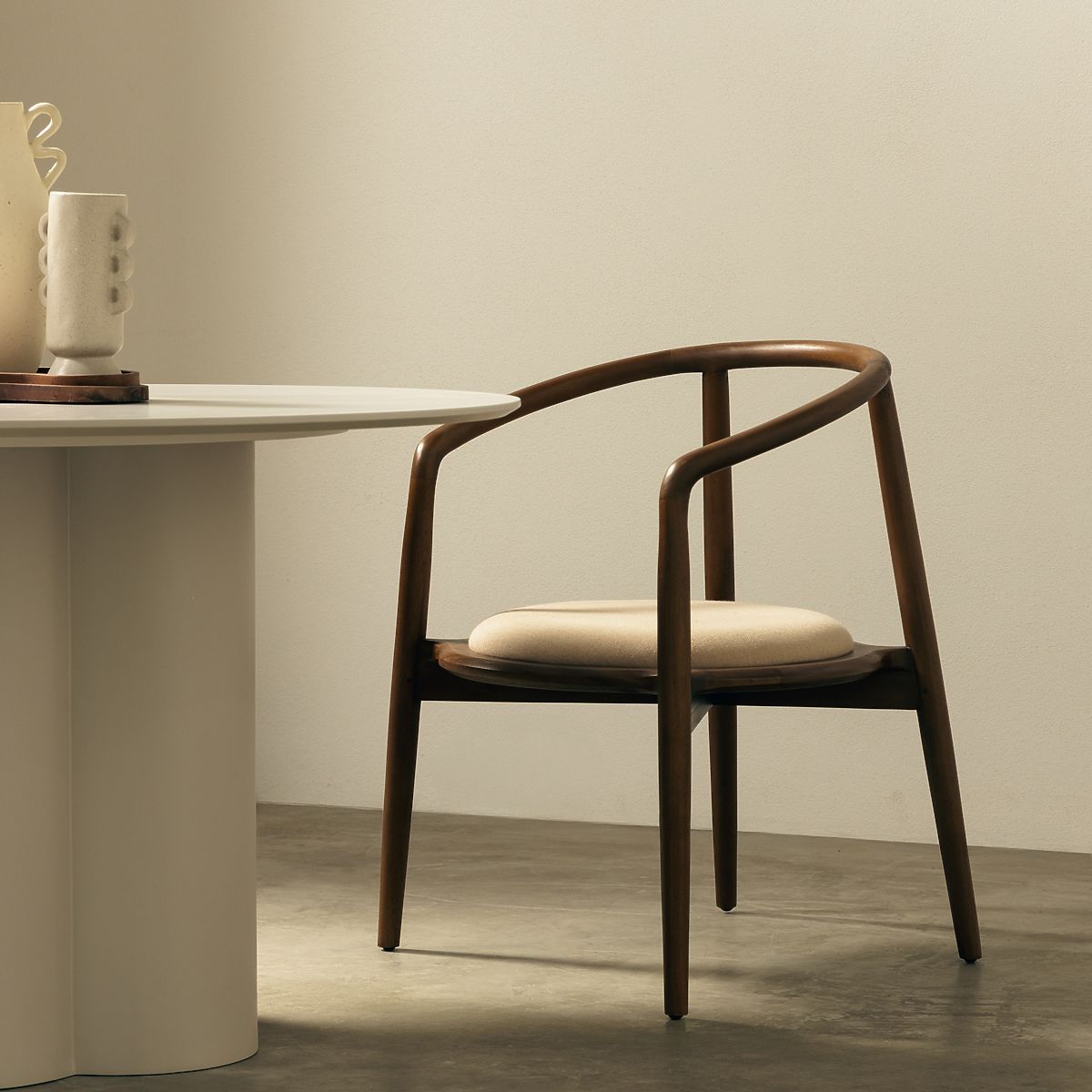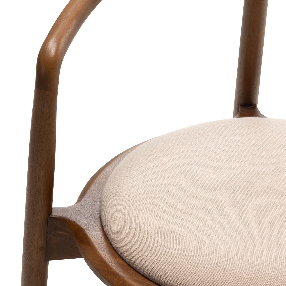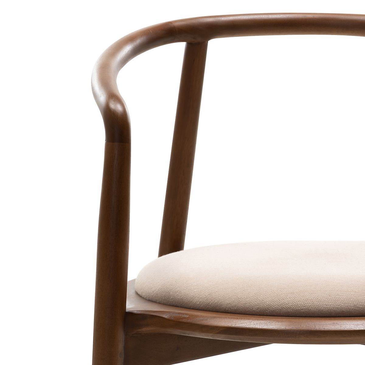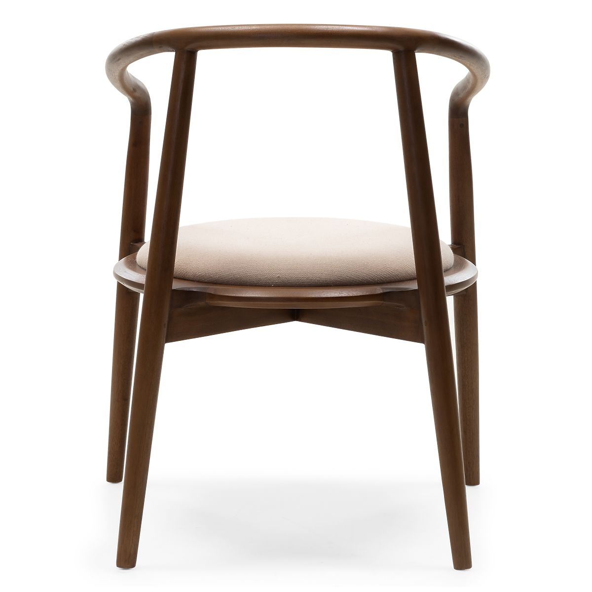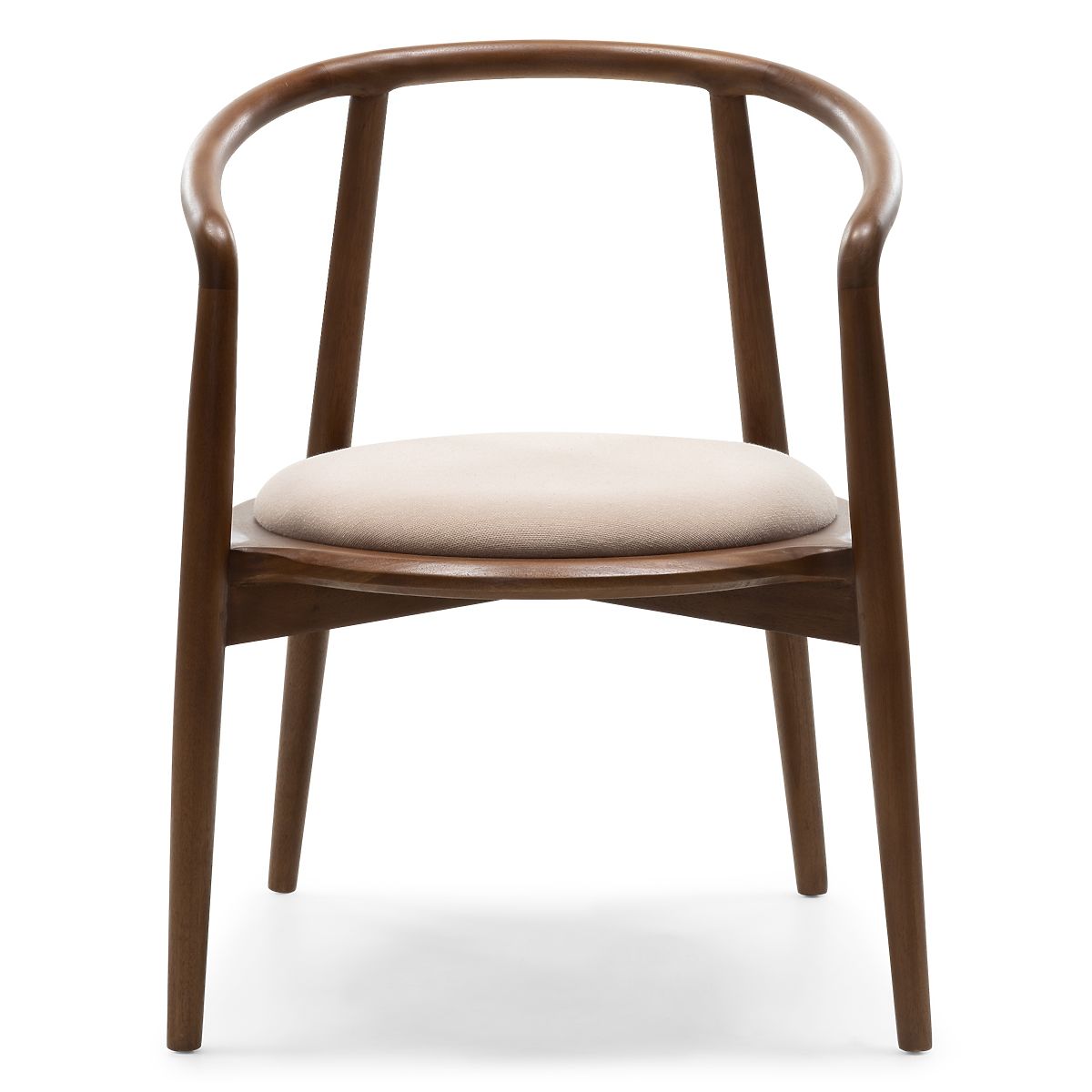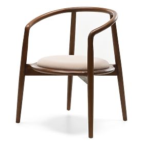 Rounded wooden chair in walnut and beige with high durability. .. more
