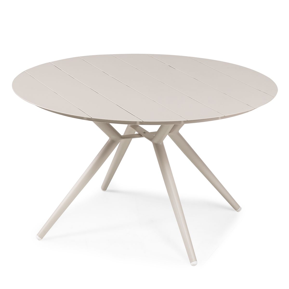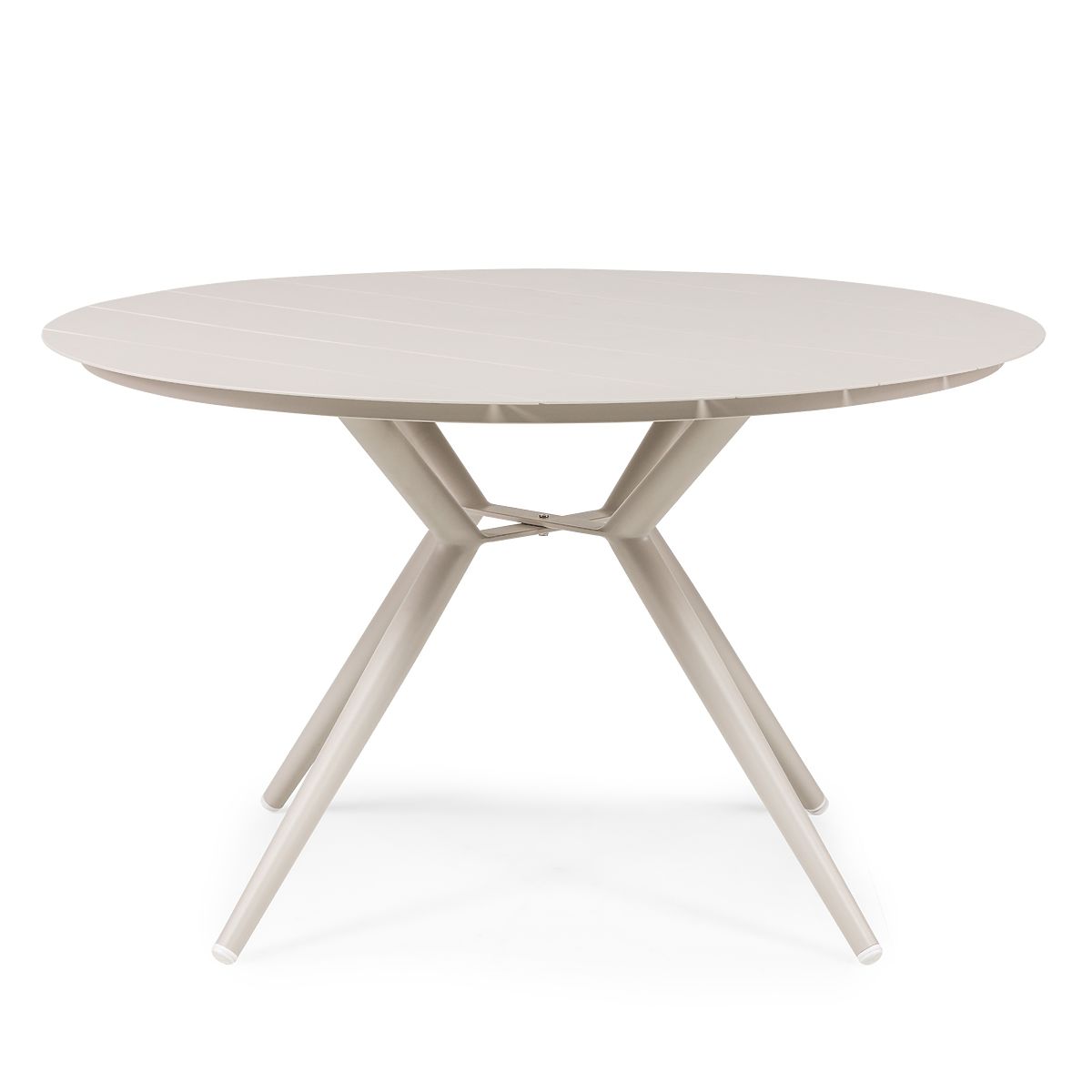 Round aluminum garden table with a 126.5 cm diameter in light beige. .. more