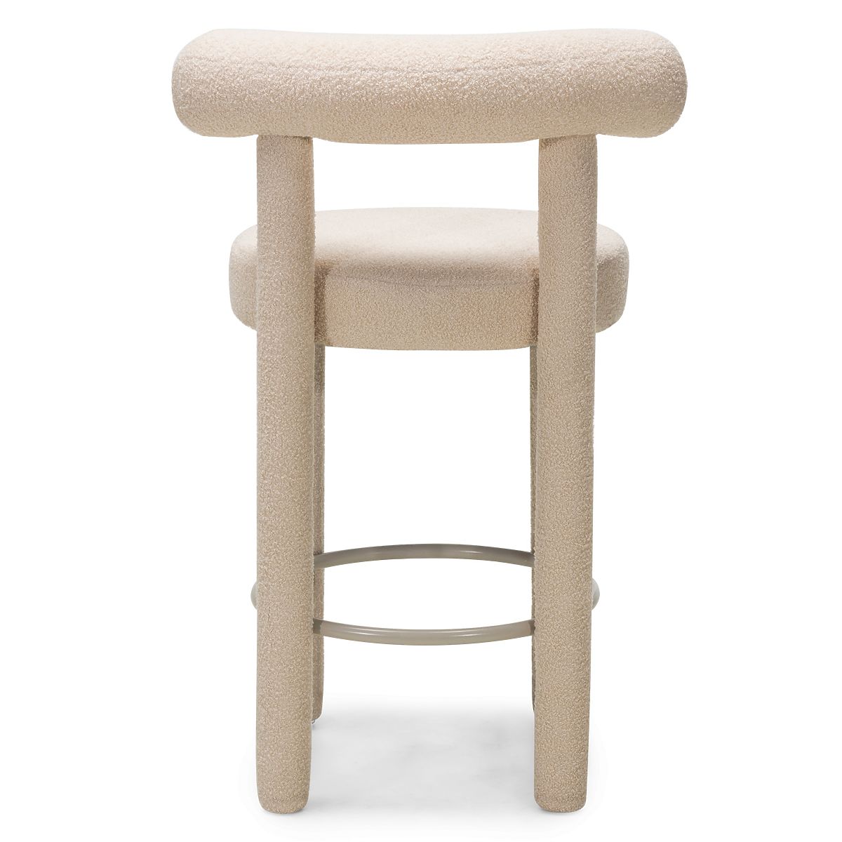 Stylish beige boucle bar stool with a rounded backrest. .. more