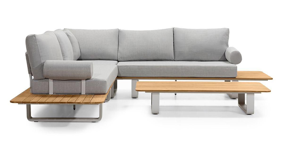 San Piero Garden Corner Sofa Set with Table, Teak FSC Wood, Gray/Natural