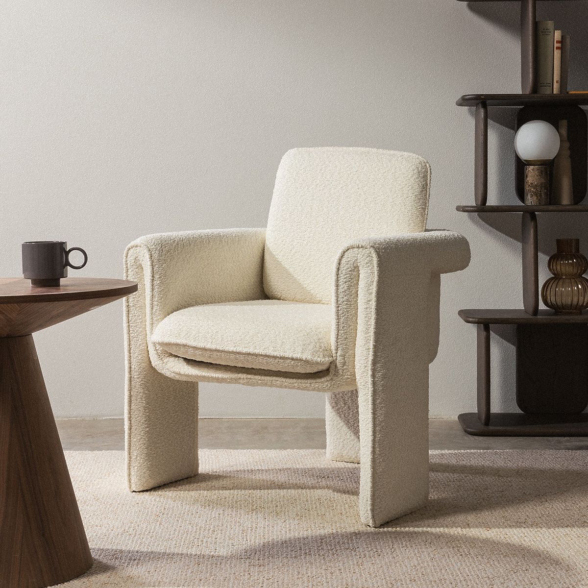 Rounded white chair with elegant and fresh design. .. more