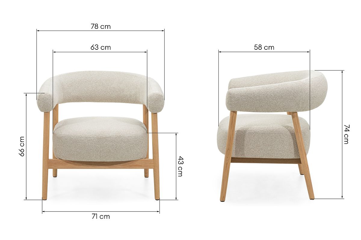 Lukafurniture.eu » Armchairs a sitting / Armchairs / Upholstered Chair/Armchair Montepulciano, Light Beige/Oak Wood, Rounded