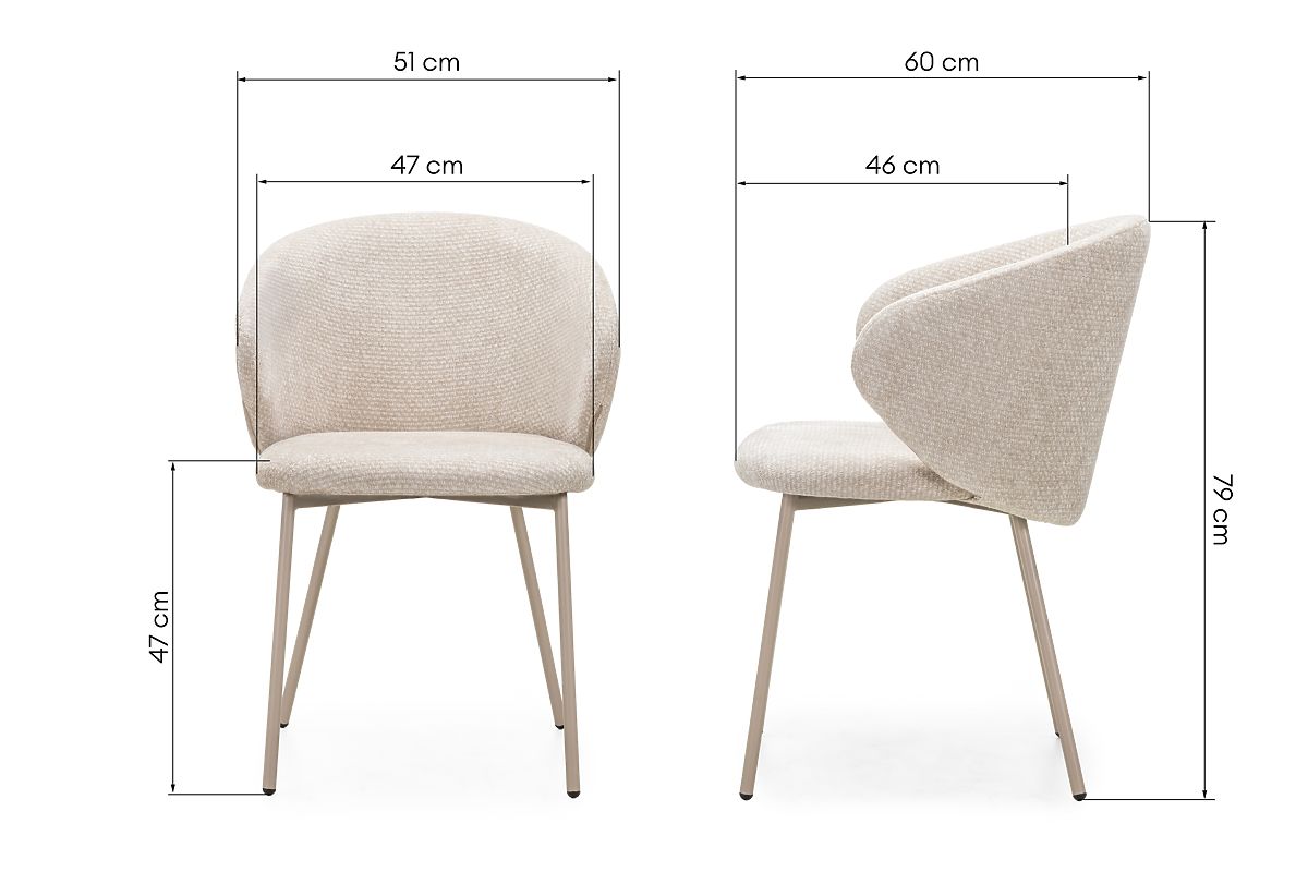 Light beige dining chair with metal legs and rounded backrest. .. more