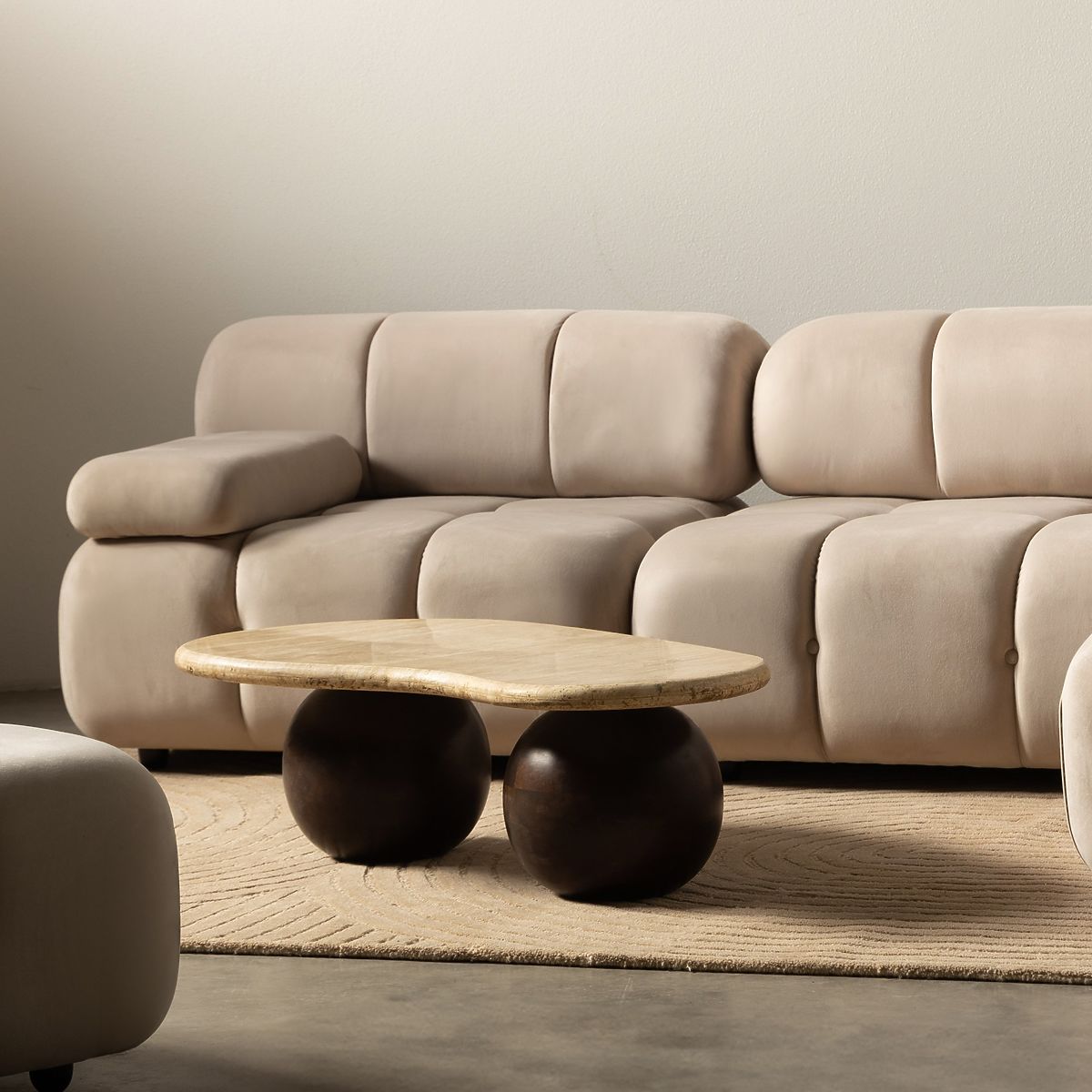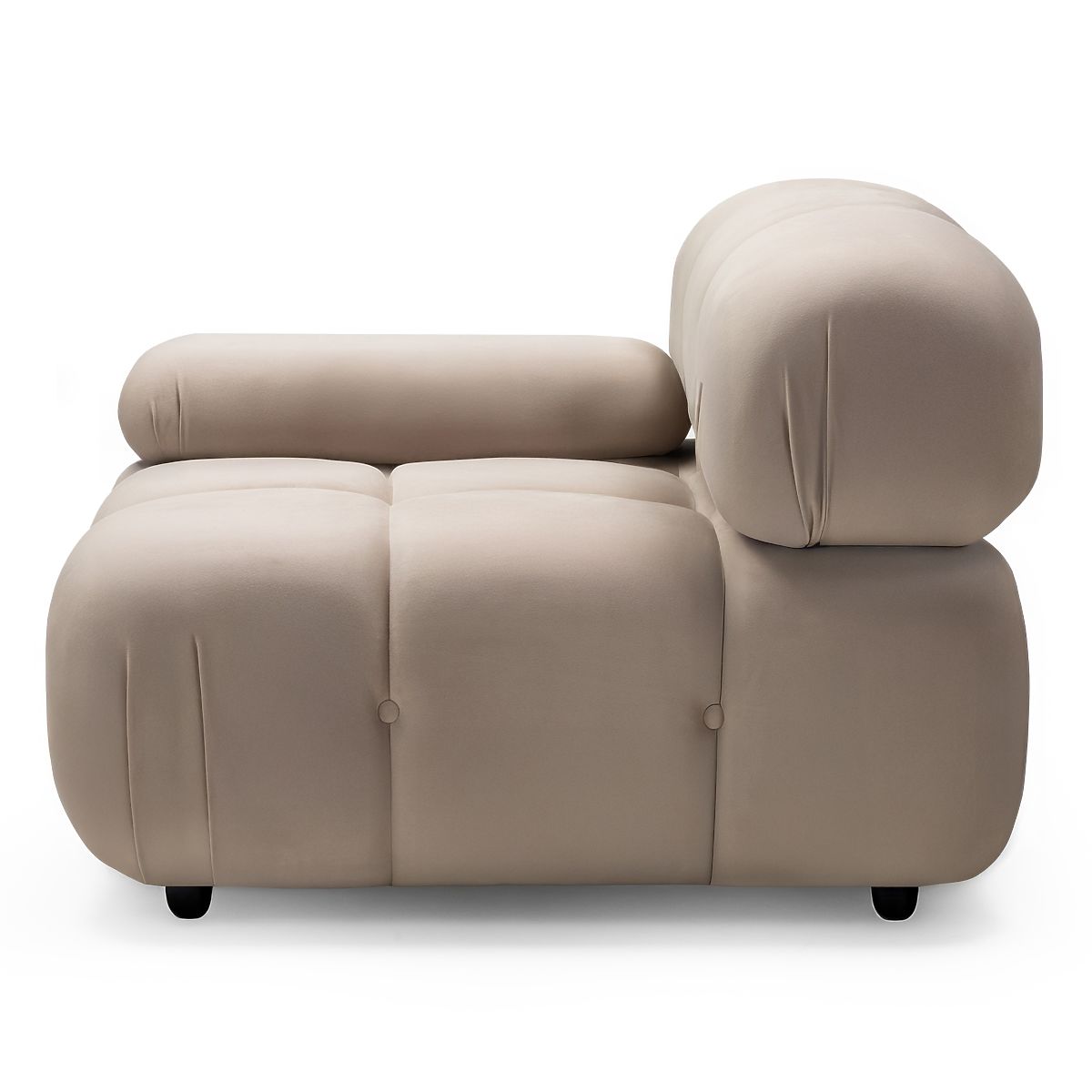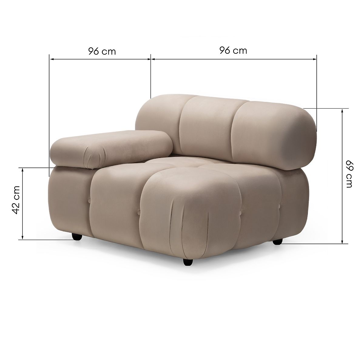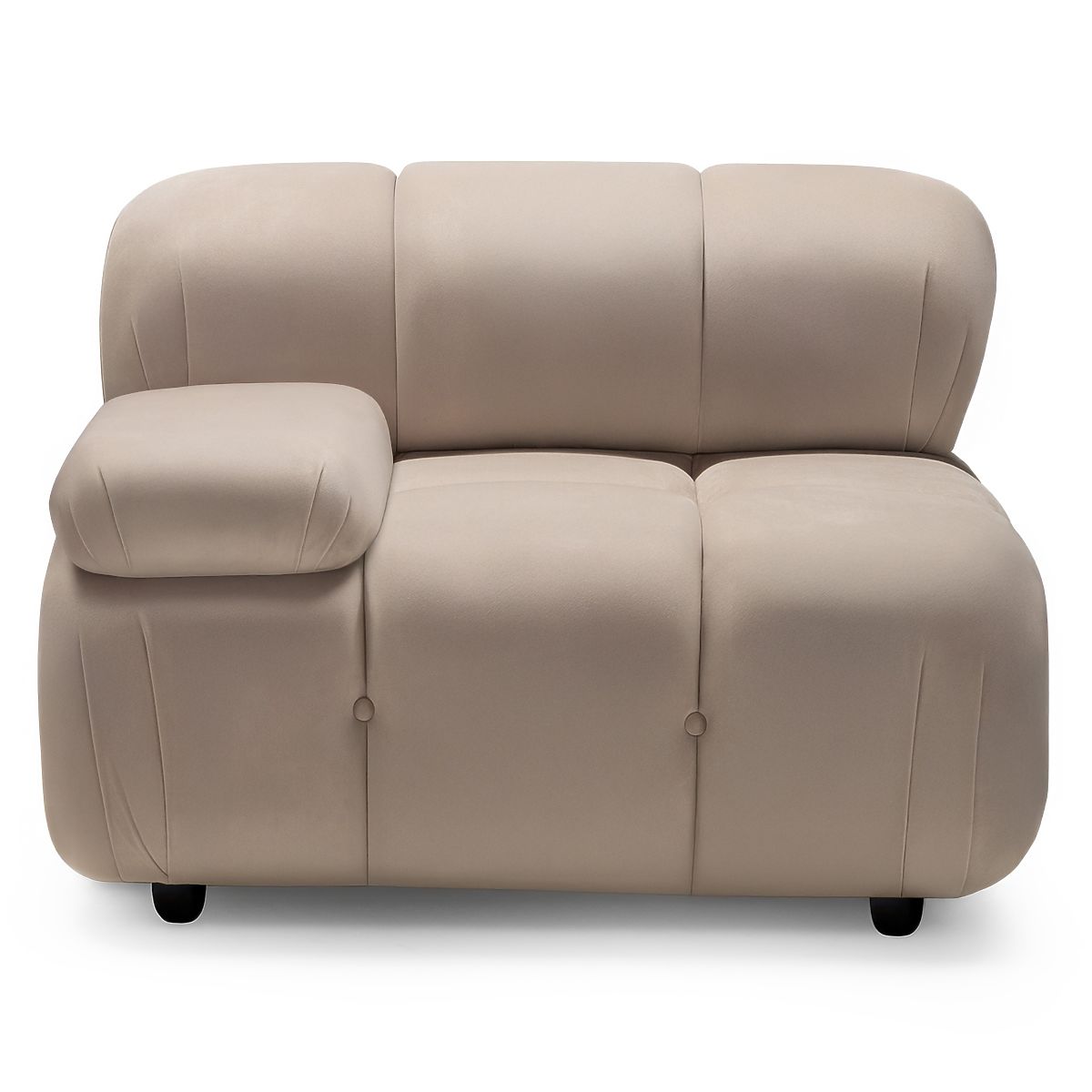 Light beige velvet module with deep stitching and silicone legs. .. more