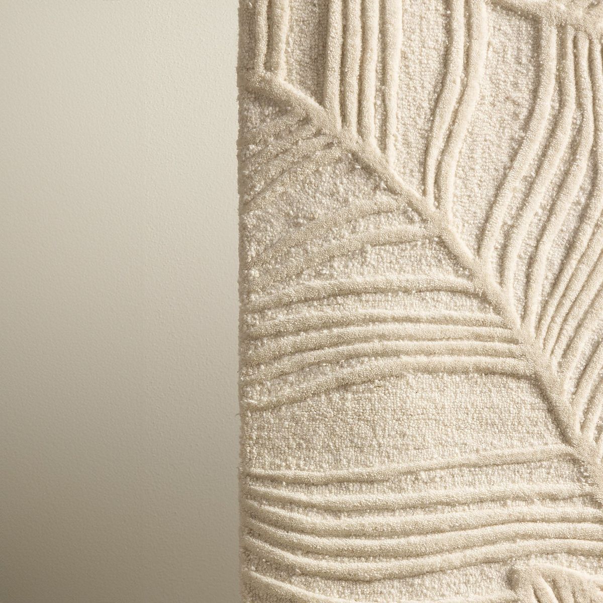 Hand-tufted wool rug with a three-dimensional leaf pattern. .. more