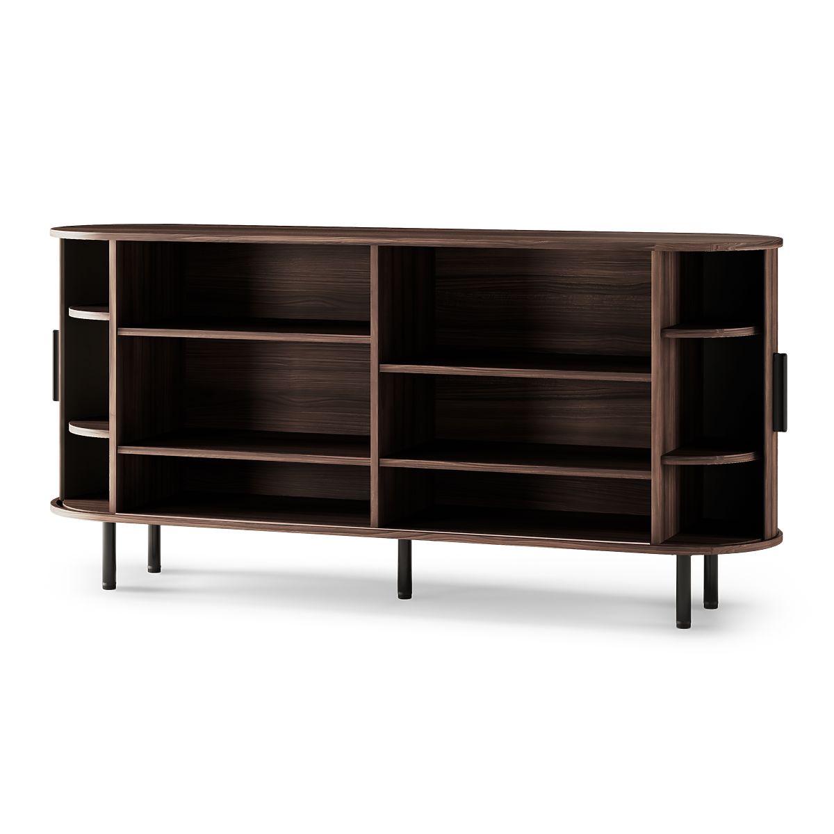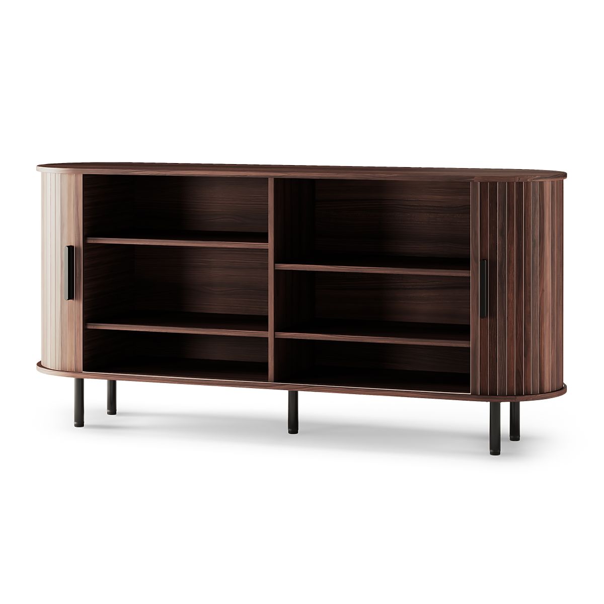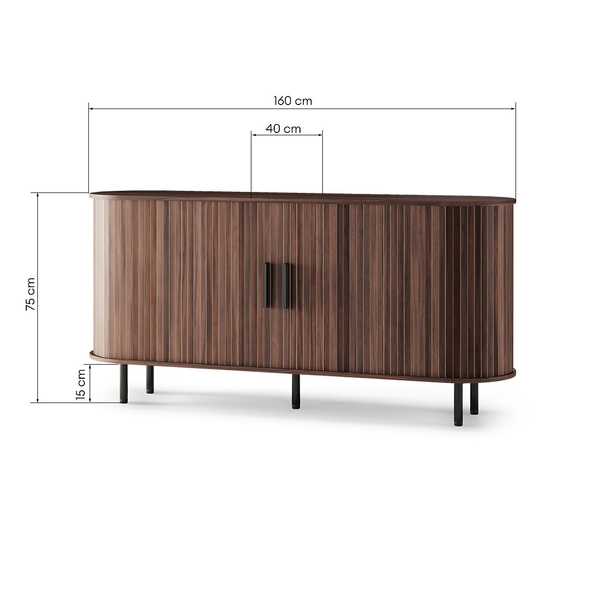 At first glance, it captivates - Gliss is the essence of modern design that transforms an ordinary interior into a space straight out of a magazine cover. The rounded shape draws attention, the vertical slats add structure and visual lightness to the fronts, while the deep walnut color is the quintessence of elegance. This is not an ordinary sideboard - it is a design jewel that plays a leading role in the arrangement of any room. Functional, side-sliding doors elegantly conceal everything you want out of sight without taking up an inch of space around the furniture - neatly, conveniently, and stylishly. The overall look is complemented by slender black legs that add lightness to the volume and emphasize its modern character. Gliss is the ideal choice if you love beautiful interiors and don't compromise between style and functionality. Its presence alone is enough to give your arrangement a completely new quality.