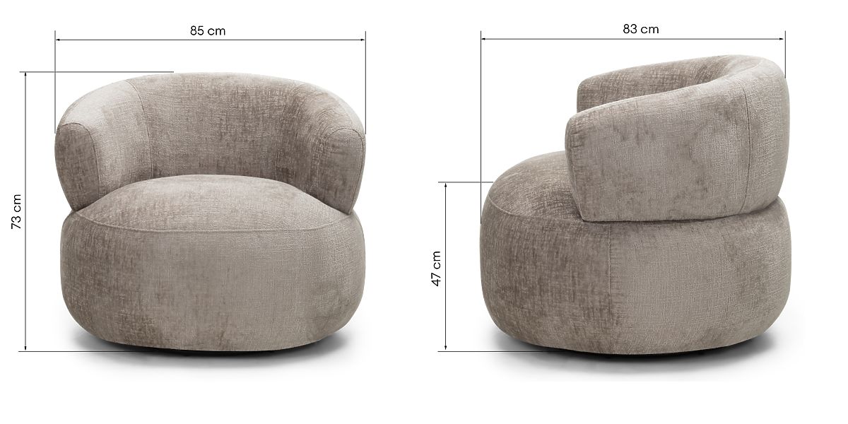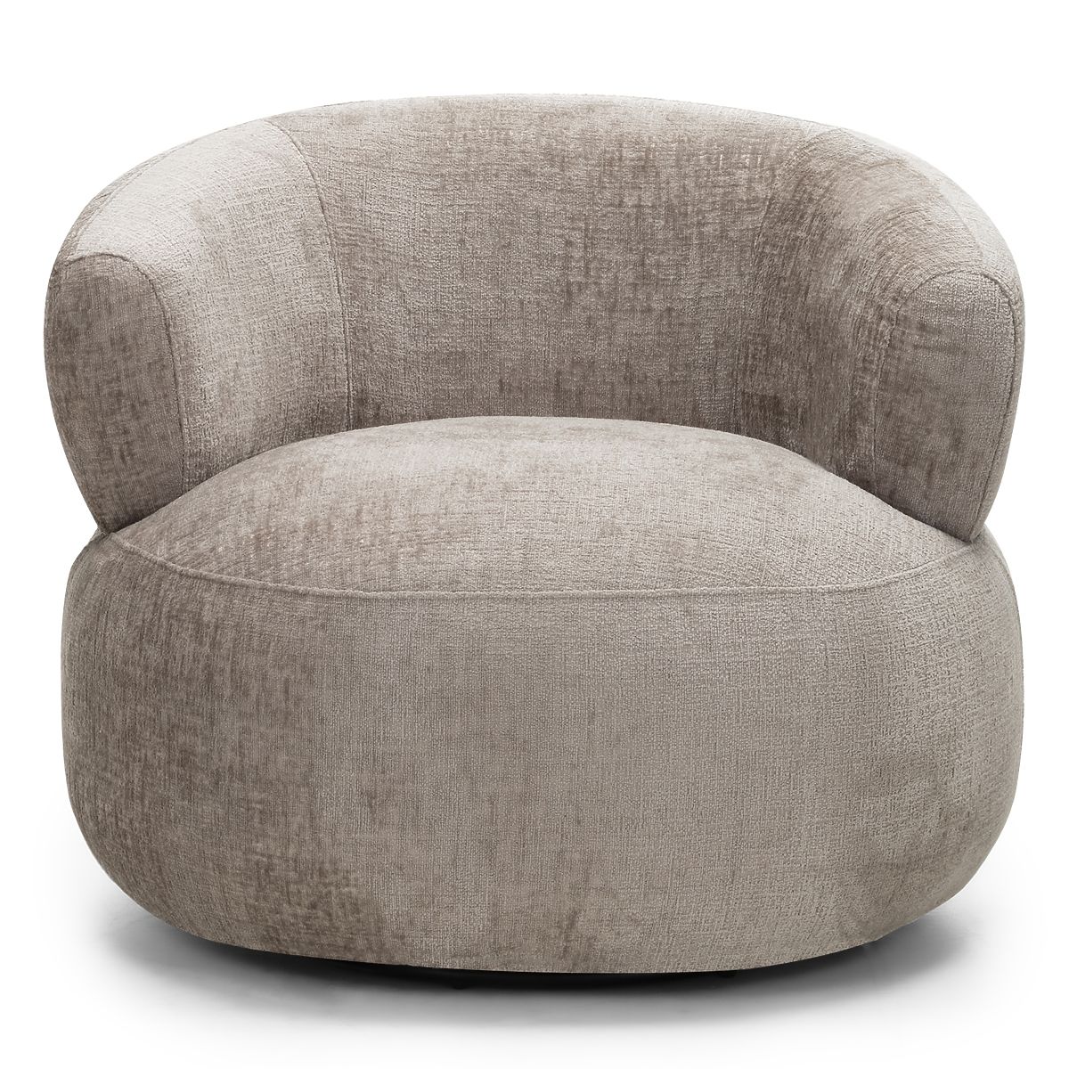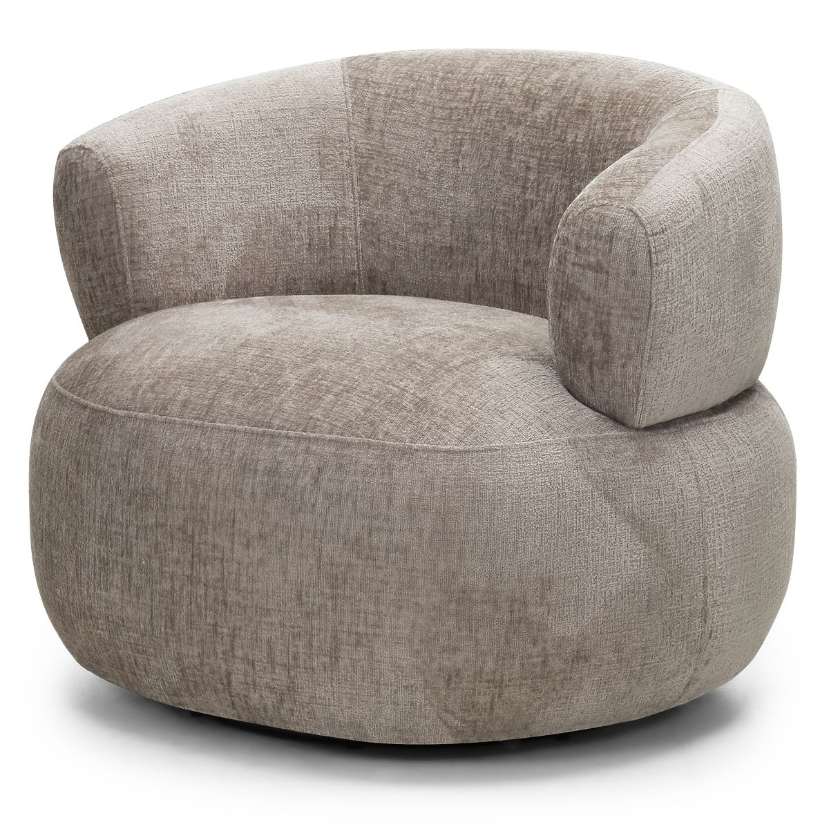 Beige Ambi swivel chair with rounded shapes for modern comfort. .. more