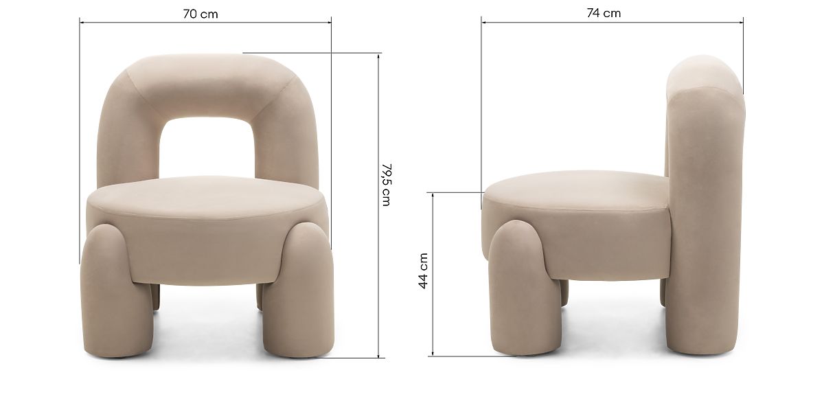 Lukafurniture.eu » Armchairs a sitting / Armchairs / Vasto Relaxation Chair, Light Beige, Velvet, Rounded Shapes