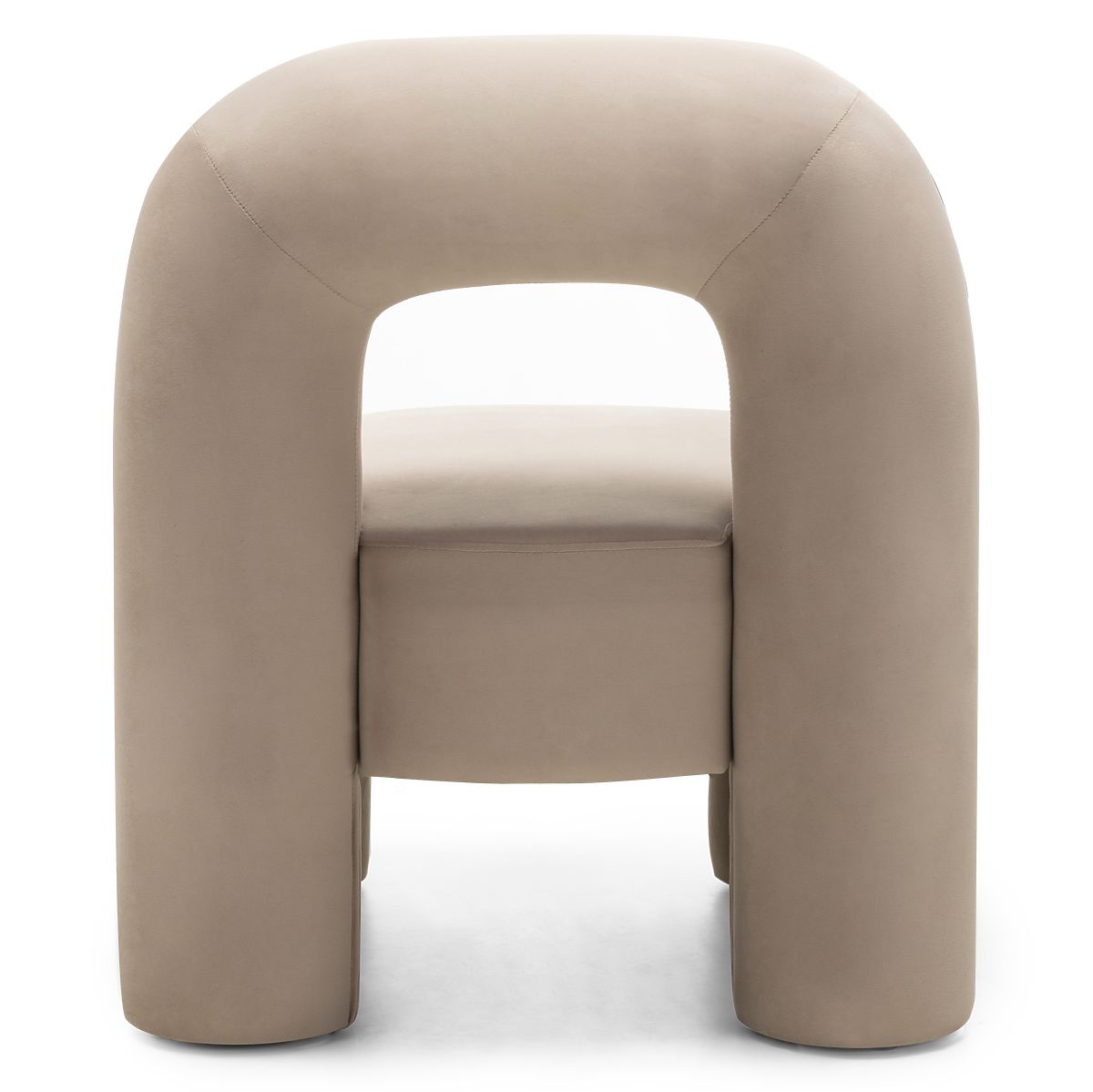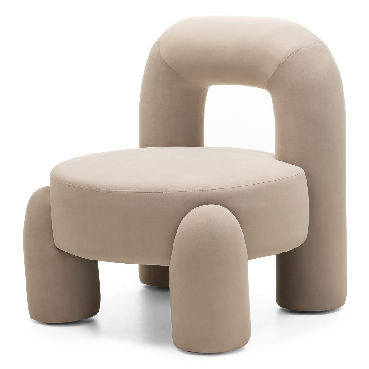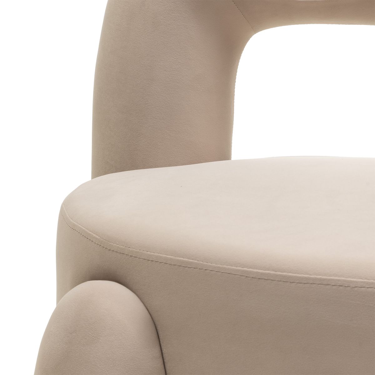 The Vasto chair features soft, light beige velvet and rounded shapes. .. more