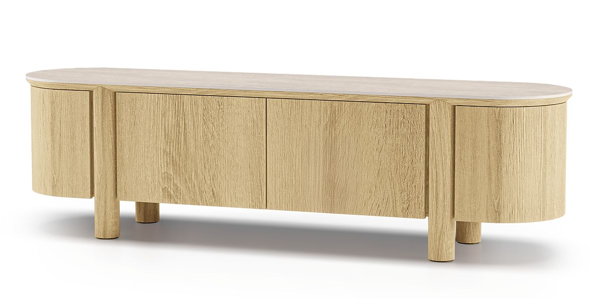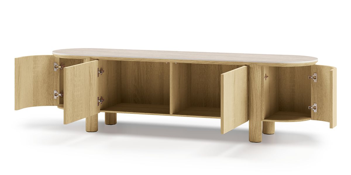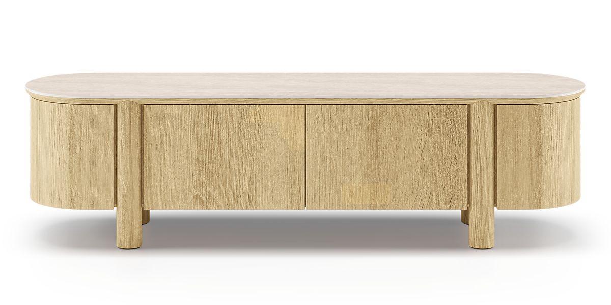 Lukafurniture.eu » Furniture / TV tables a commodes / Segretto TV Cabinet with Four Doors, Rounded, Natural Oak, Travertine