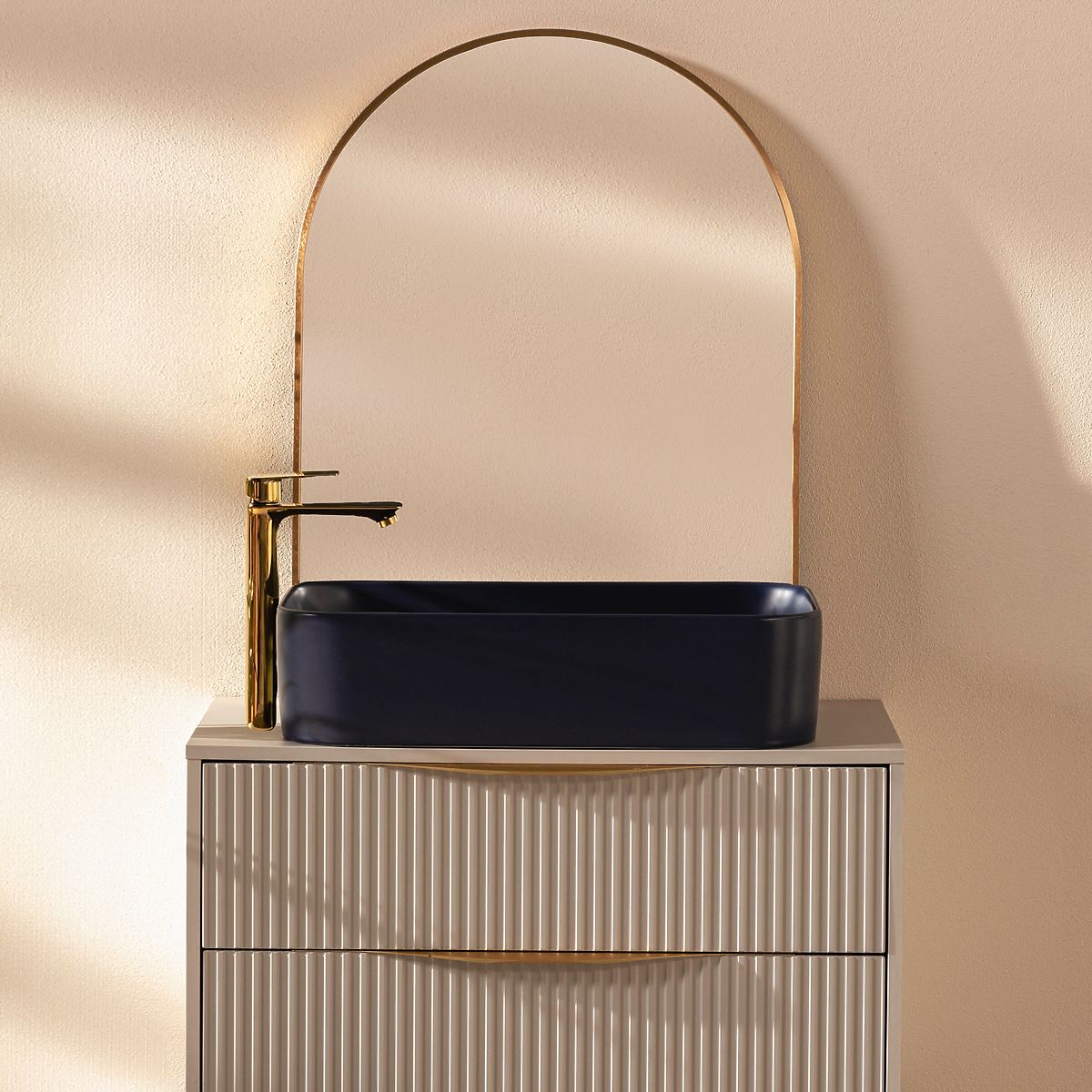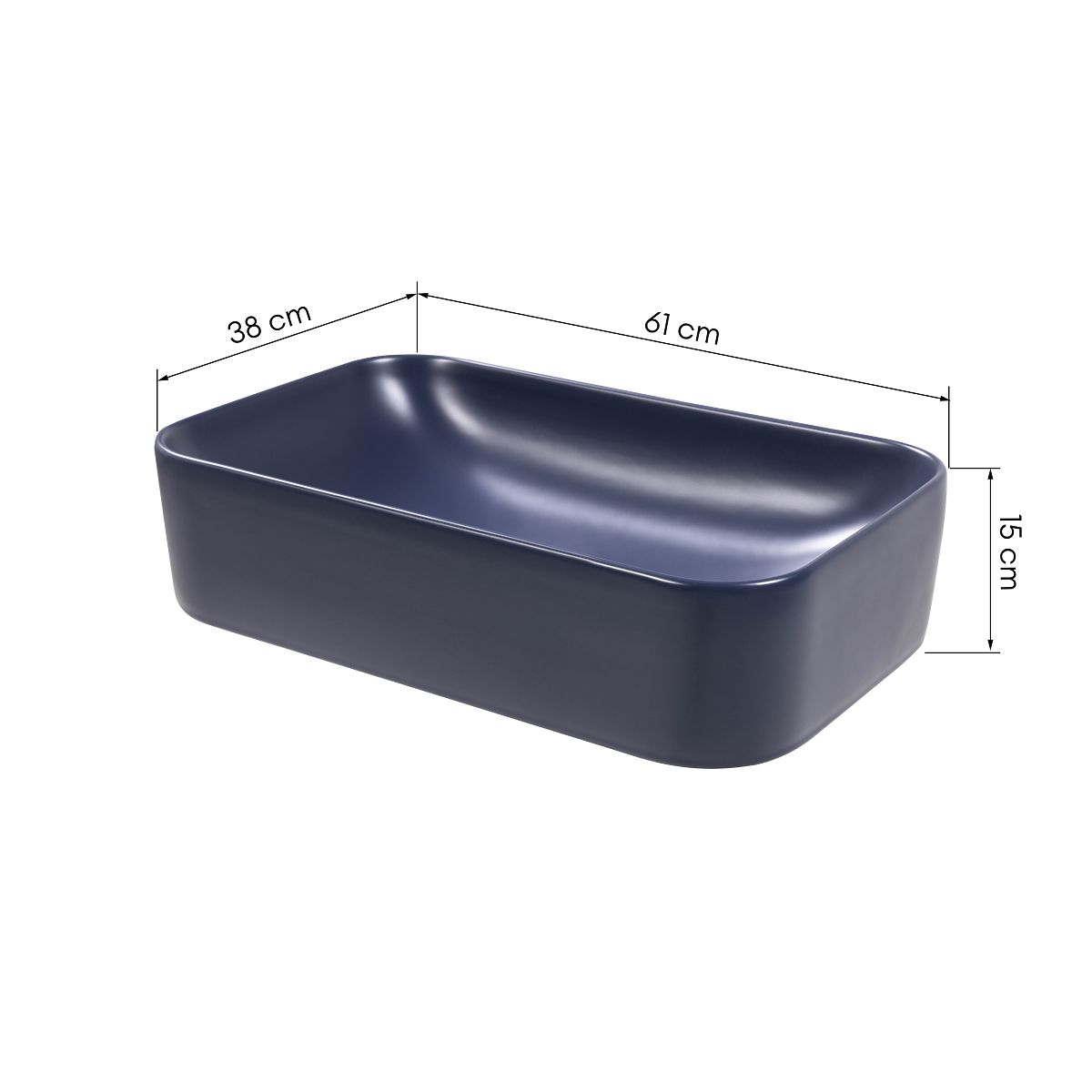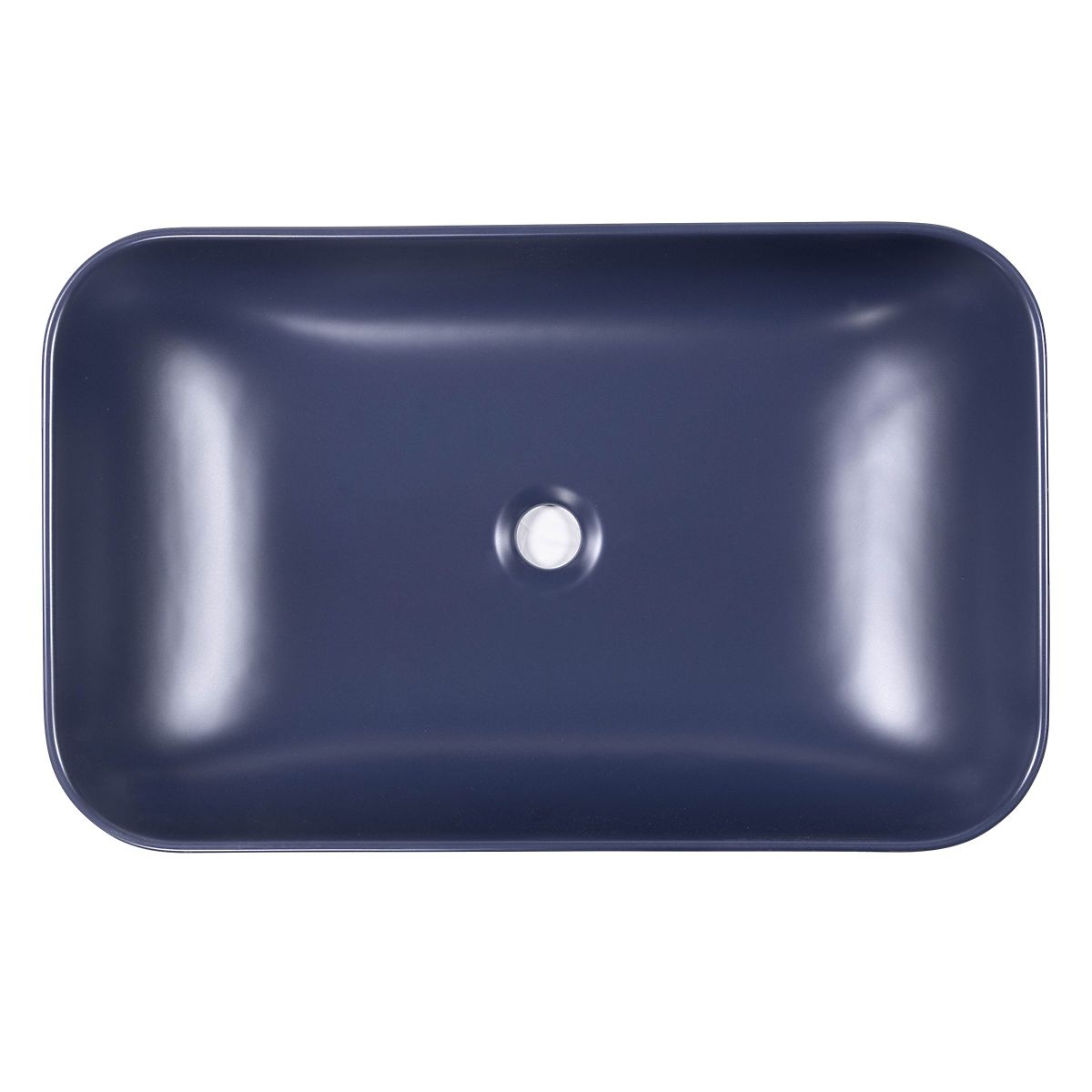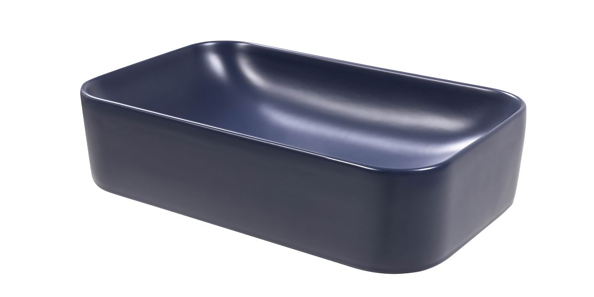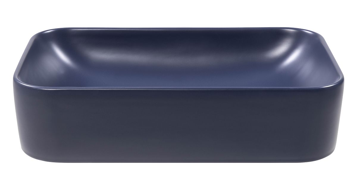 Modern blue ceramic sink without tap hole and overflow. .. more