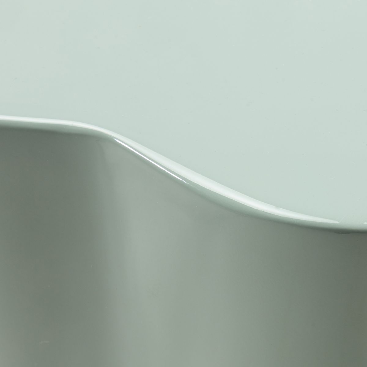 Sage-colored, glossy side table with rounded shapes. .. more
