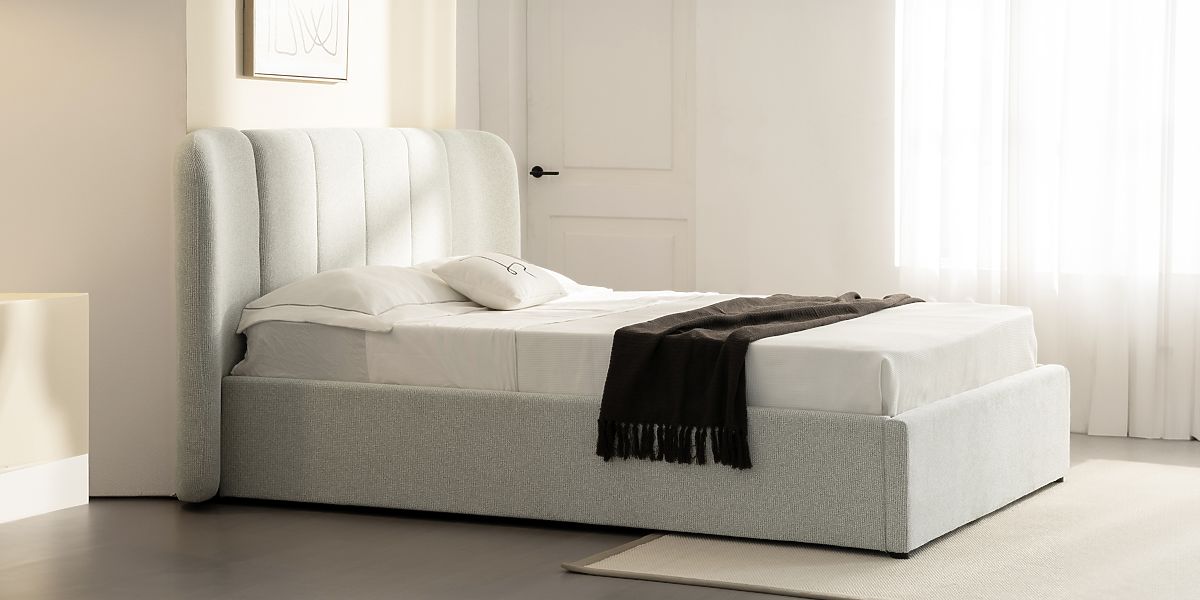 Lukafurniture.eu » Beds / Matrimonial beds / Beds 160x200 / Upholstered Bed Snoovia 160x200 cm, with Slatted Frame and Storage, Light Beige