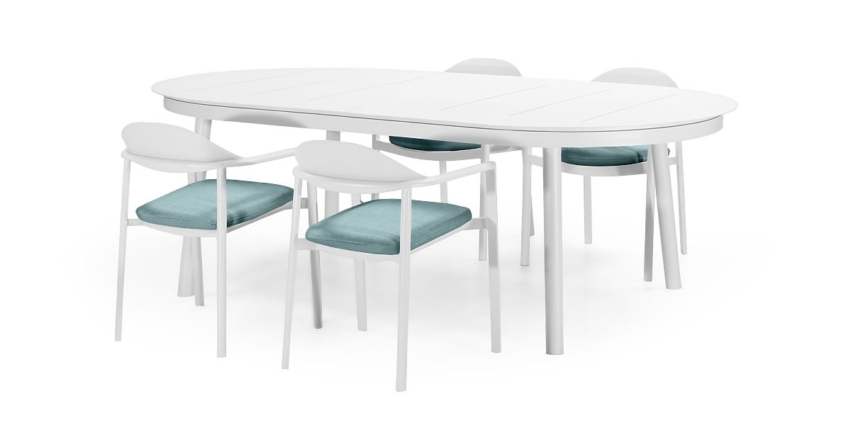 Lukafurniture.eu » Garden furniture / Marinelli Garden Set, Extendable Table 230-300 cm + 4 Chairs, Aluminum, White
