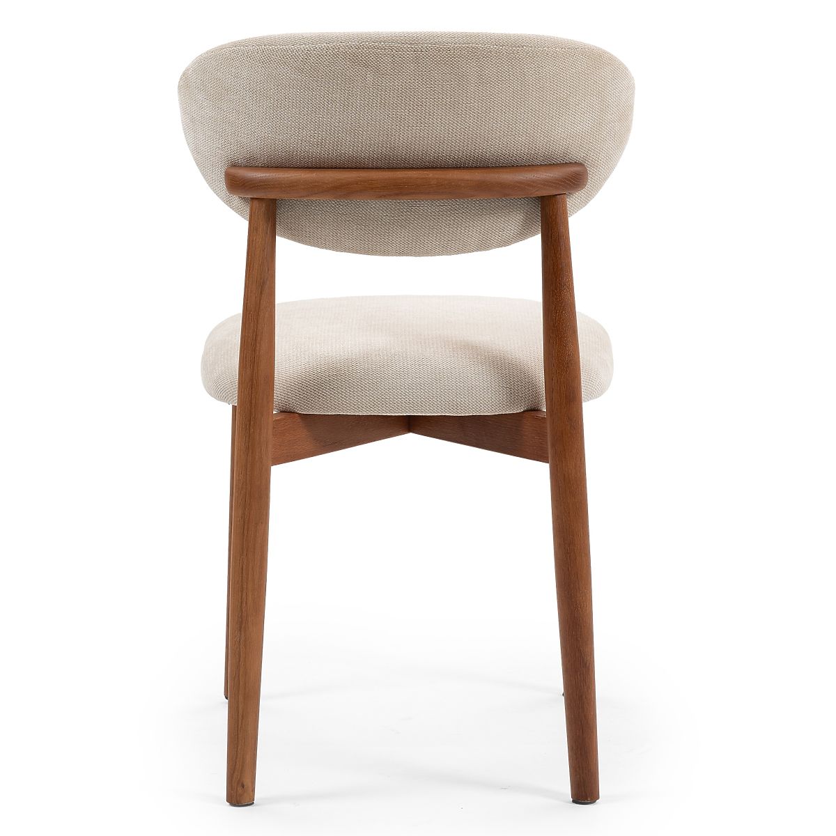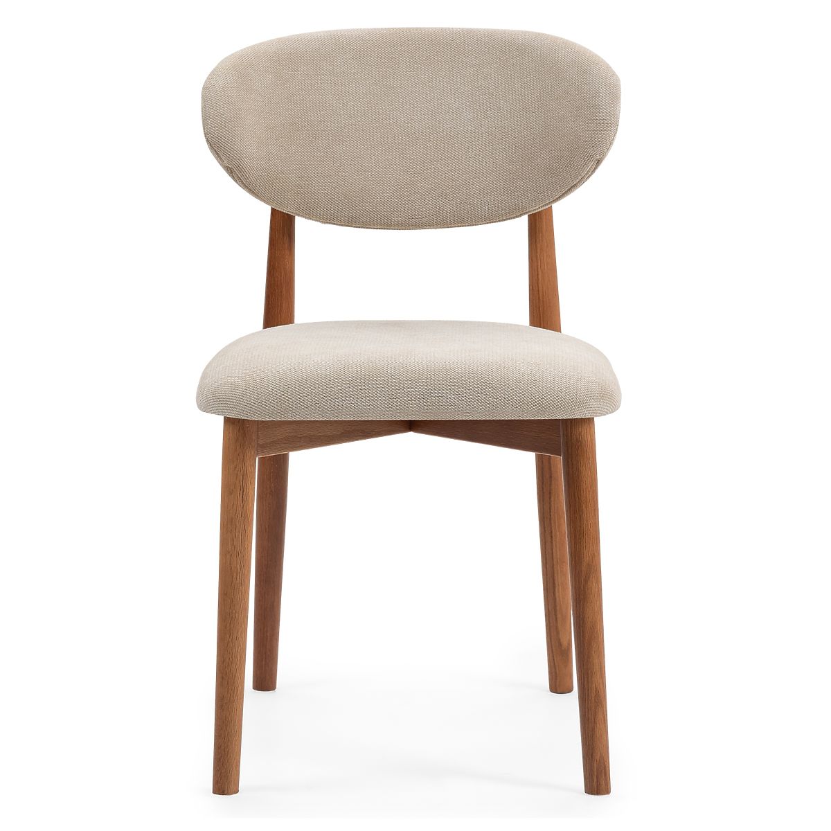 Elegant Merano chair with beige fabric and light walnut oak legs. .. more