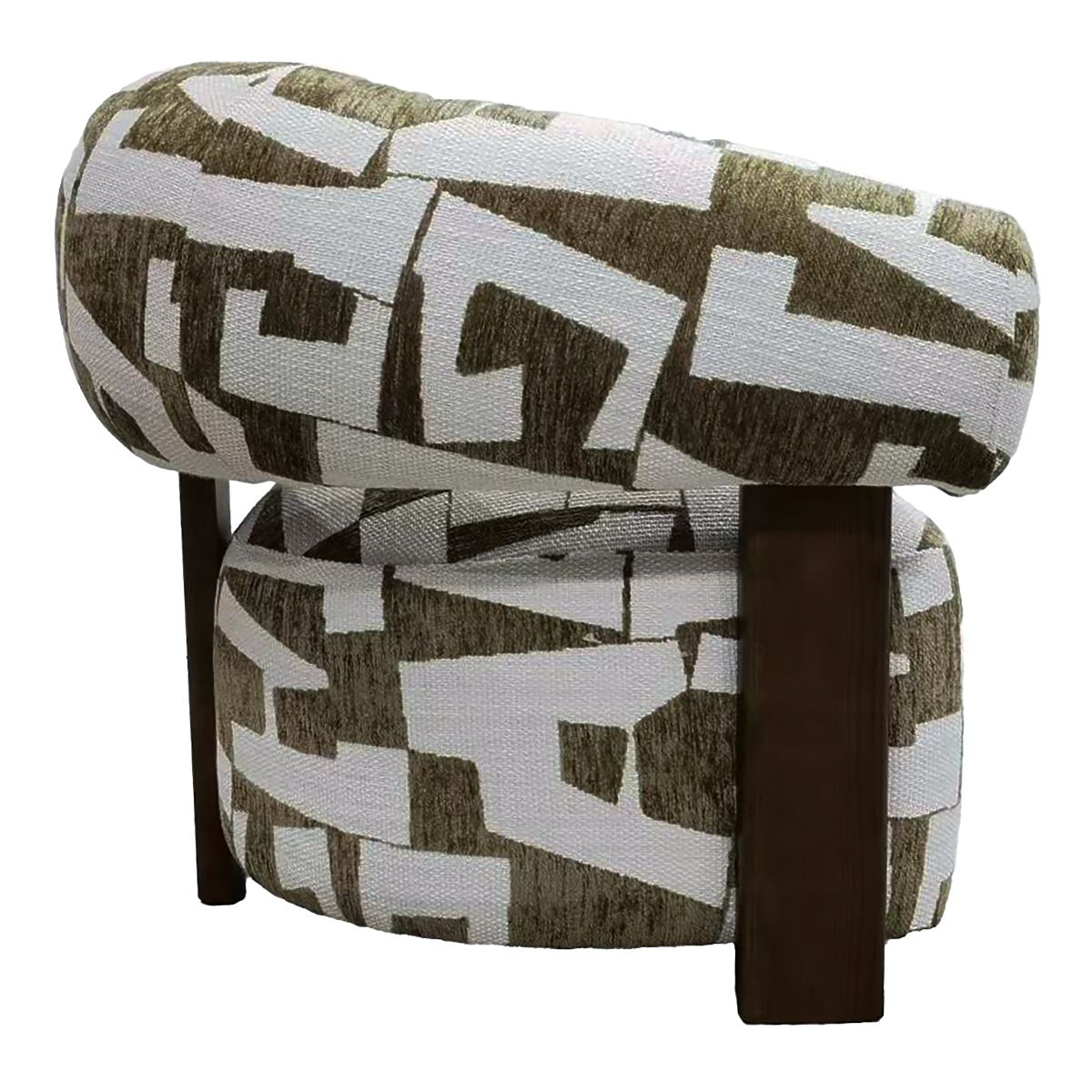 Maribel chair offers comfort with its olive-cream fabric and walnut legs. .. more