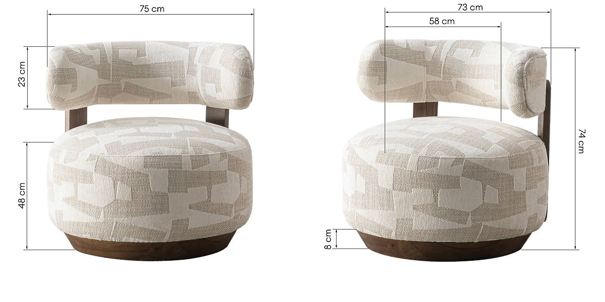 Lukafurniture.eu » Armchairs a sitting / Armchairs / Dolce Relaxation Chair, Rounded Shapes, Beige/Cream, Walnut