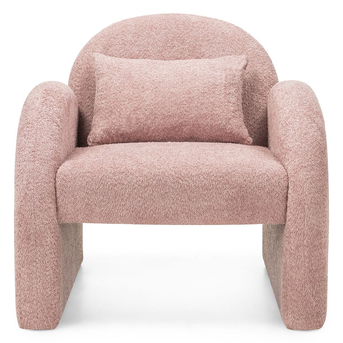 Rounded pink relaxation chair with soft boucle upholstery. .. more