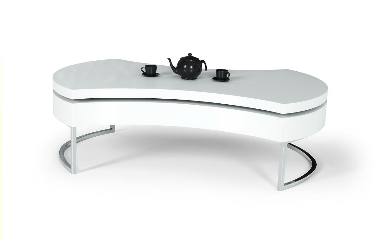White coffee table made of lacquered MDF and chromed steel. .. more