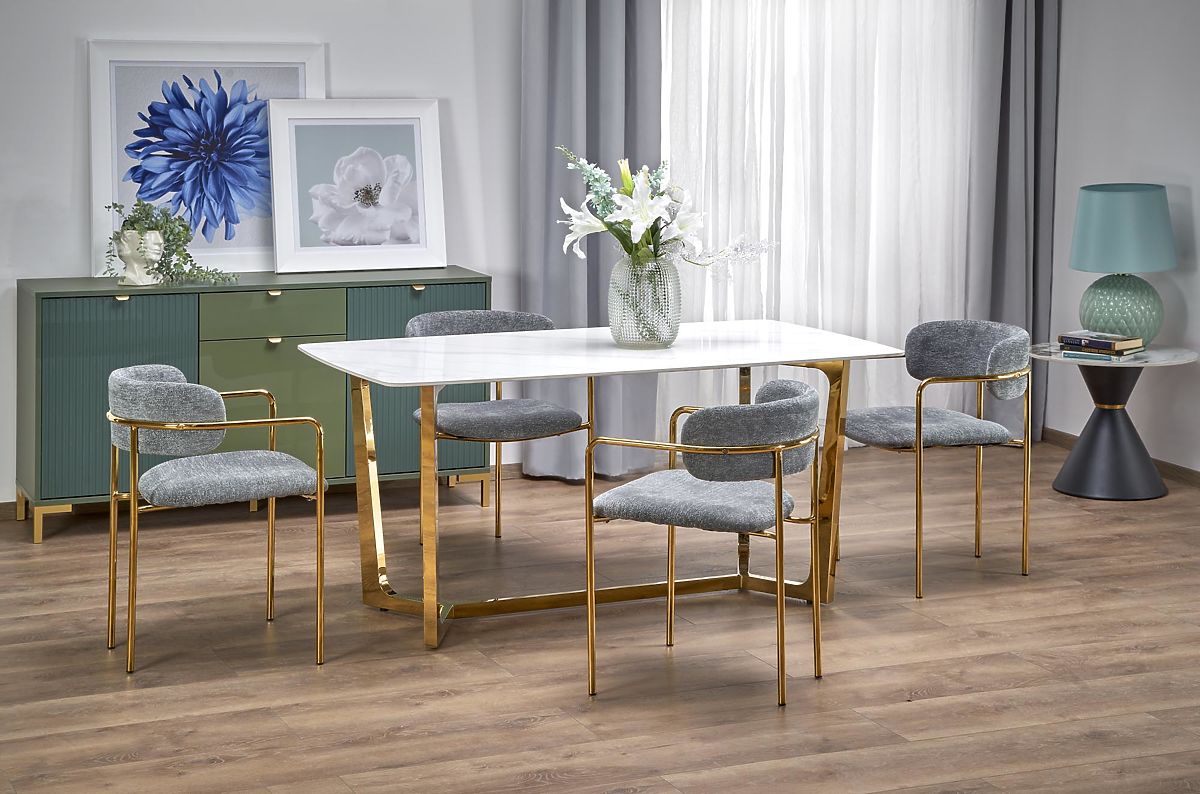 Lukafurniture.eu » Do home / Dining room and kitchen / Dining tables / CLEMENTE Table Top - White Marble, Legs - Gold (2p=1pc)
