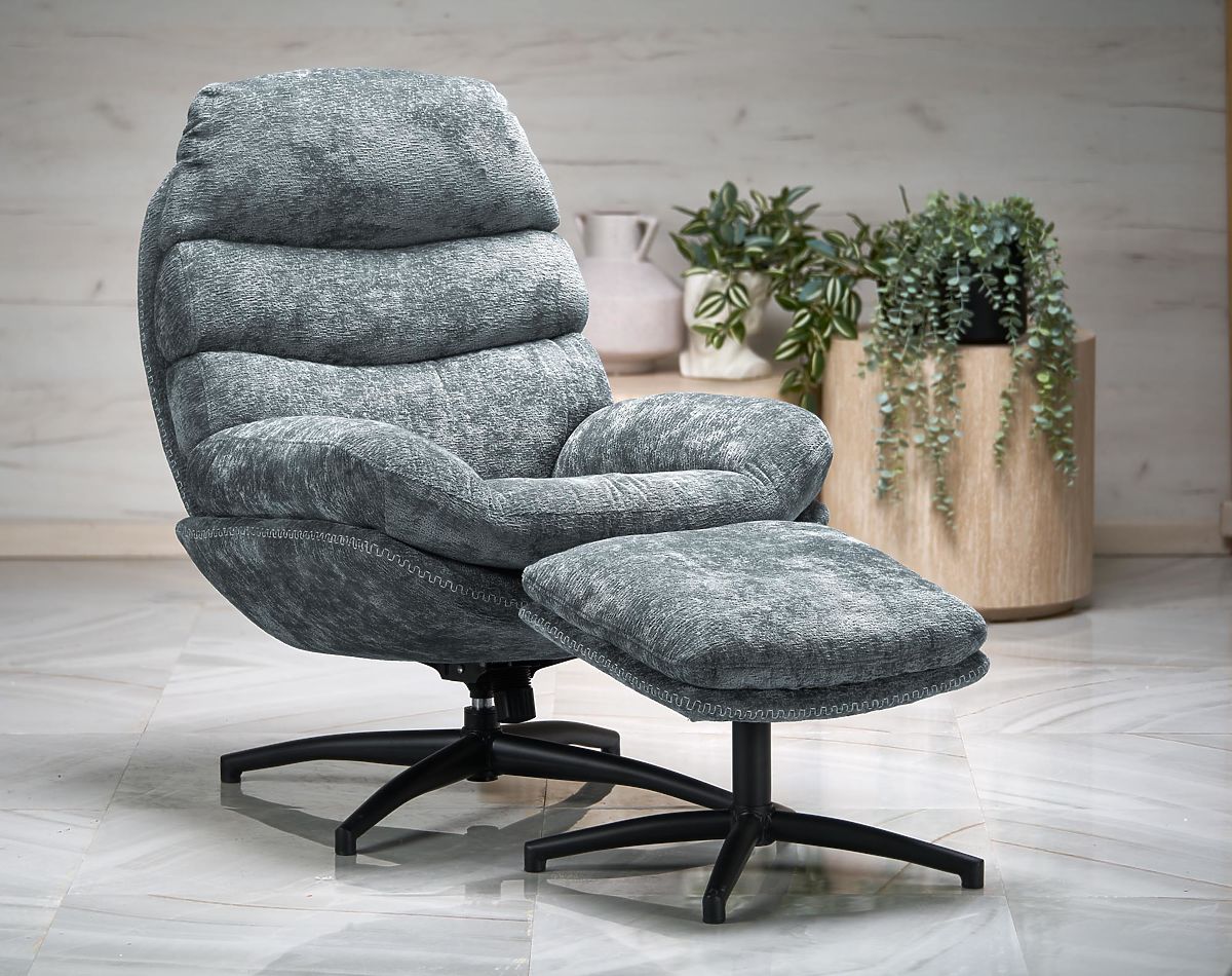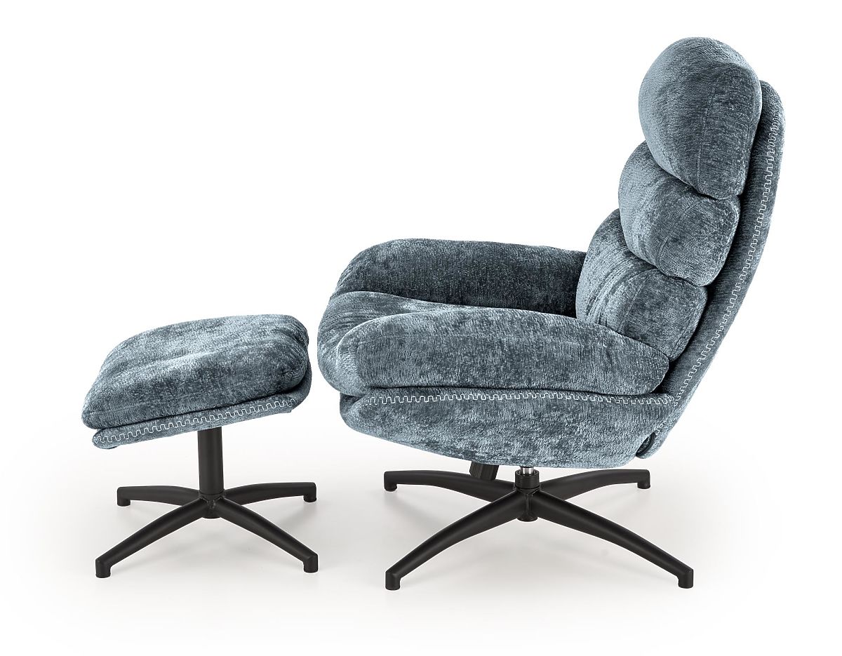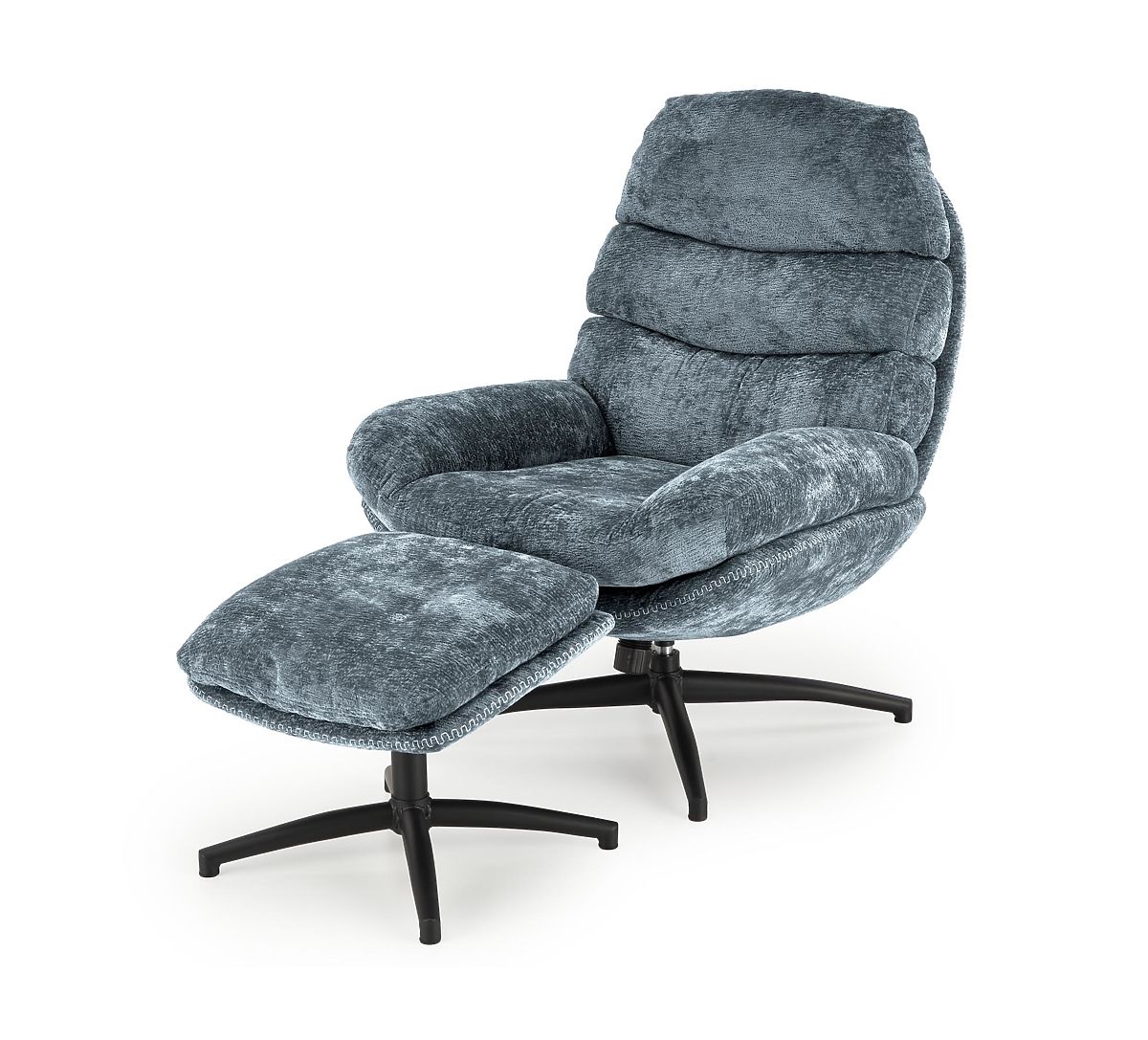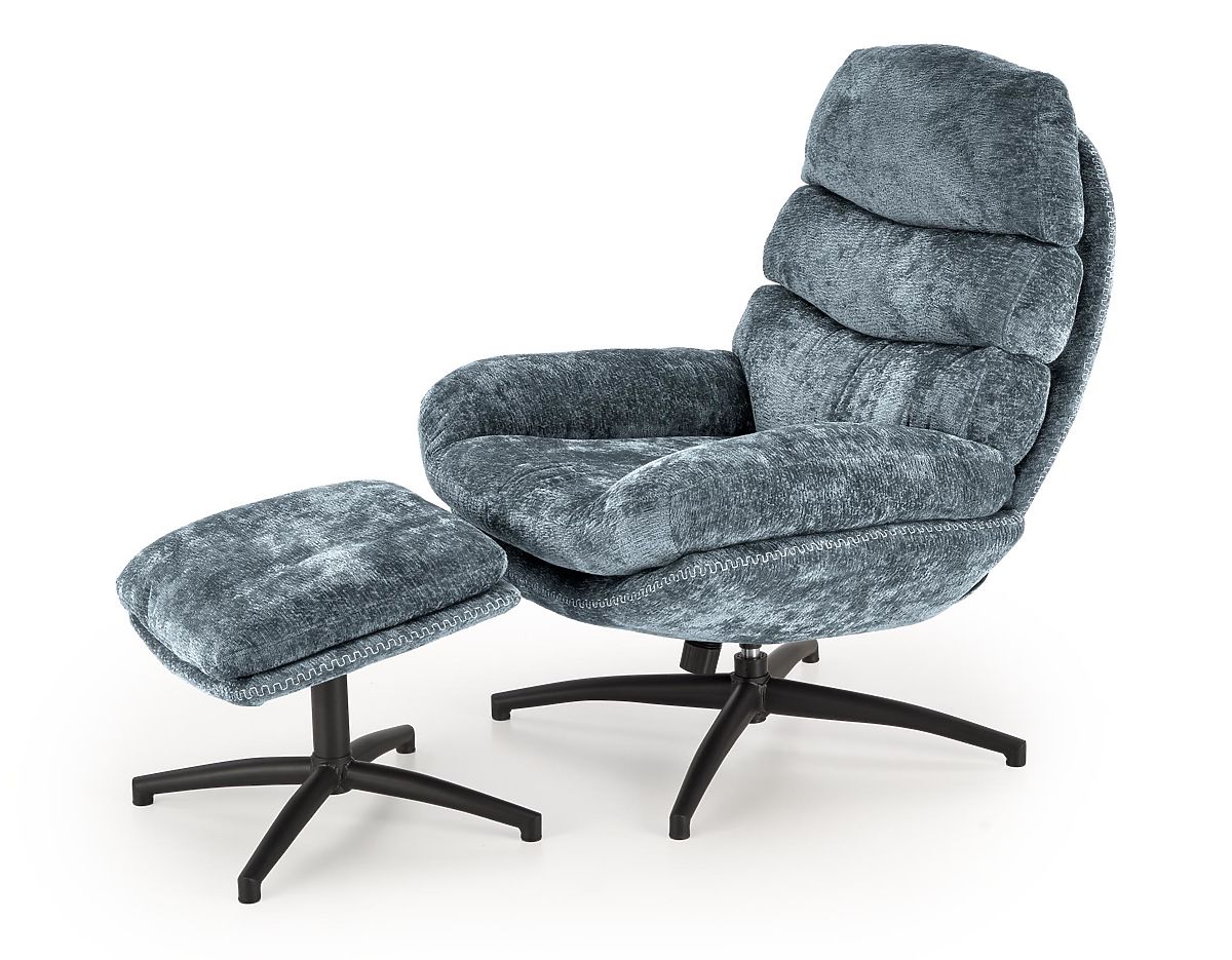 Blue relaxation chair DARIO with footrest and rocking function. .. more